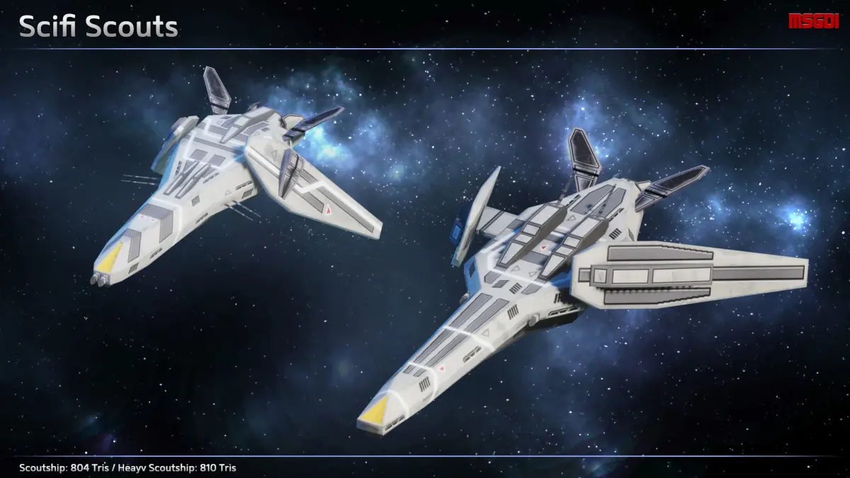 This pack contains a complete fleet of fighters, bombers, scouts and carriers. They can be used in space RTS games, in a sidescroller or in a top-down shoot’em up.