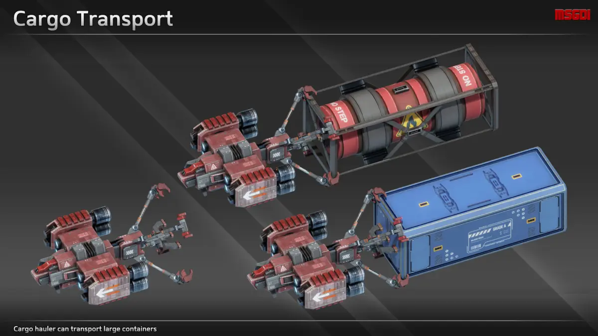 - Texture sizes are 2x 4096 (ship, containers), 2048 (loader drone) and 1024 (thrusters)