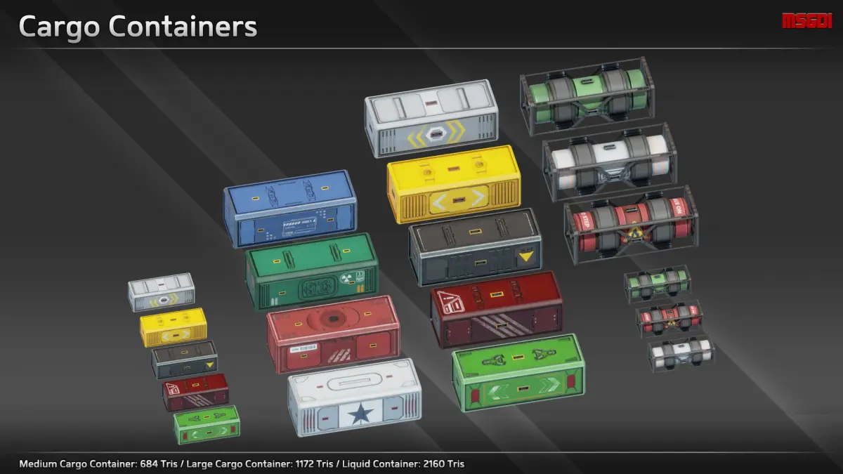- Final tris count depends on which cargo container is used for the ship