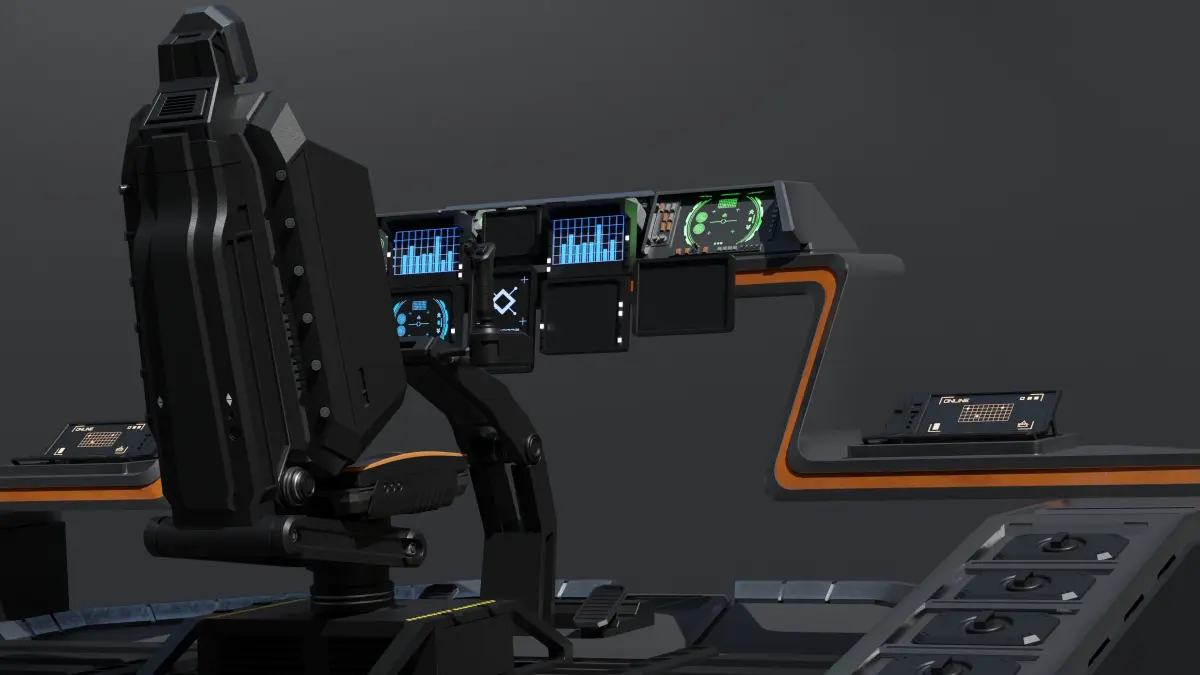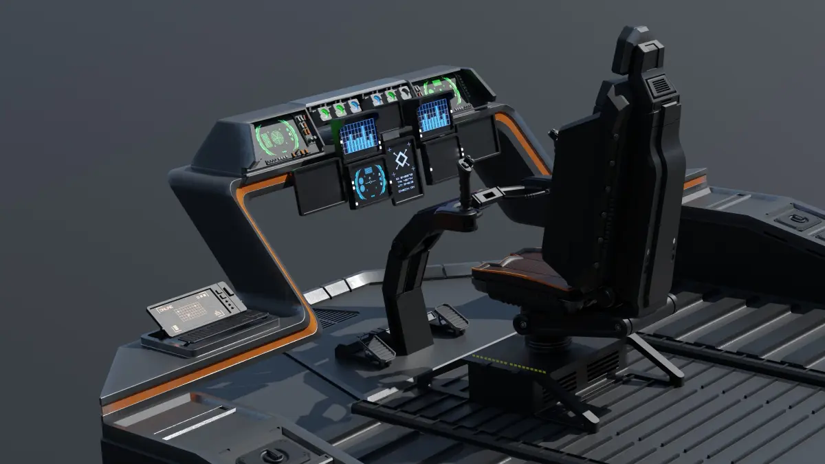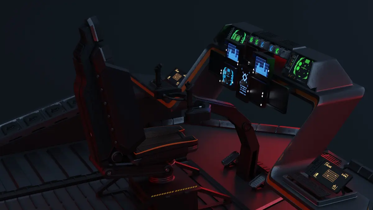 Original concept of cockpit section prop for spaceships. The Seat is suitable to most sci-fi vehicles. Originally modelled in blender.