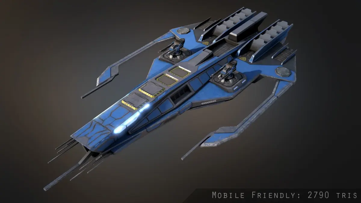 Features: - Phalanx Corvette (2790 tris) - Praetor Gunship (2134 tris) - Templar Frigate (3082 tris) - Rhodes Battlecruiser (4160 tris) - Substance Materials to customize paint color, emission color and weathering level. - PBR textures (Albedo, Metallic, Metallic+Smoothness(A), Roughness. Illumination and AO) - 4 Example texture sets: Pristine and Weathered, in blue and red colors. - 6 engine assets of different styles and sizes - 6 turret assets of different styles and sizes (components are separated for easy animating)