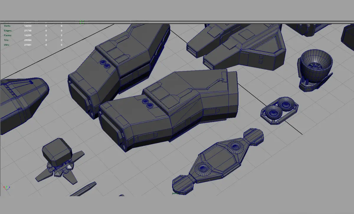 Low polygon 20 piece Spaceship kit bash set.All parts have been uv mapped.Textures included.Uv templates included.