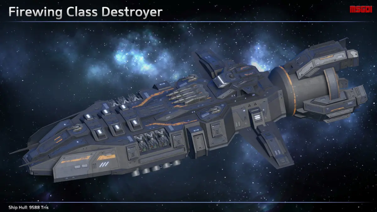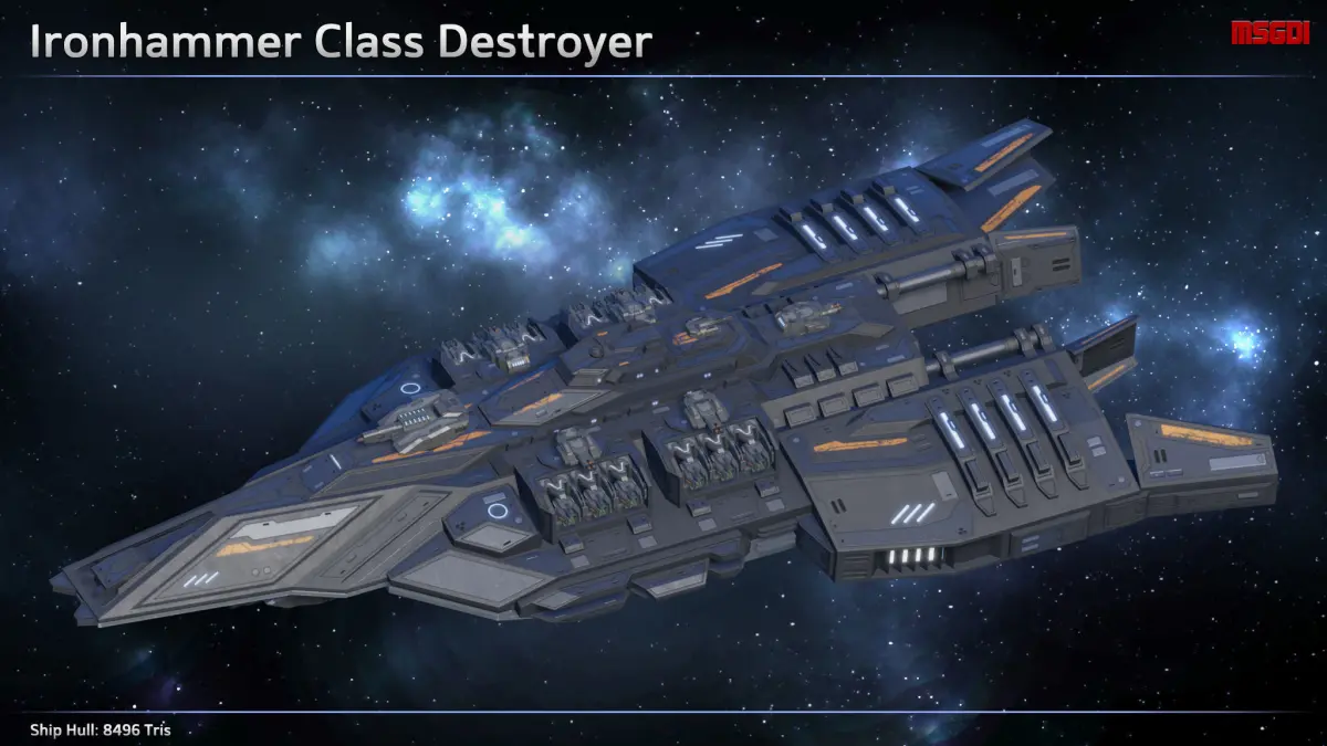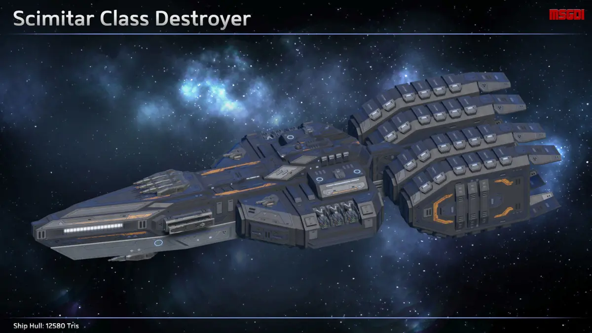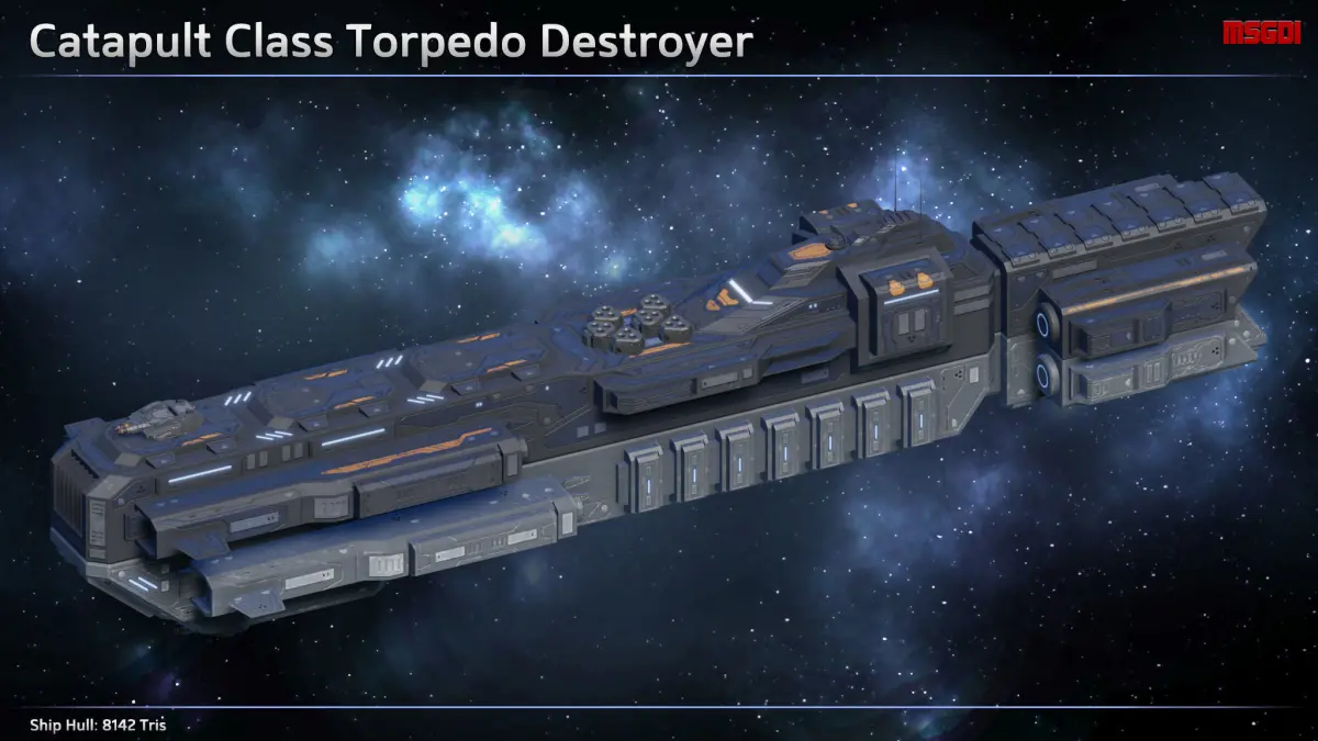 - 6 turrets, 3 missile launchers, 1 torpedo launcher, gun batteries and hangars