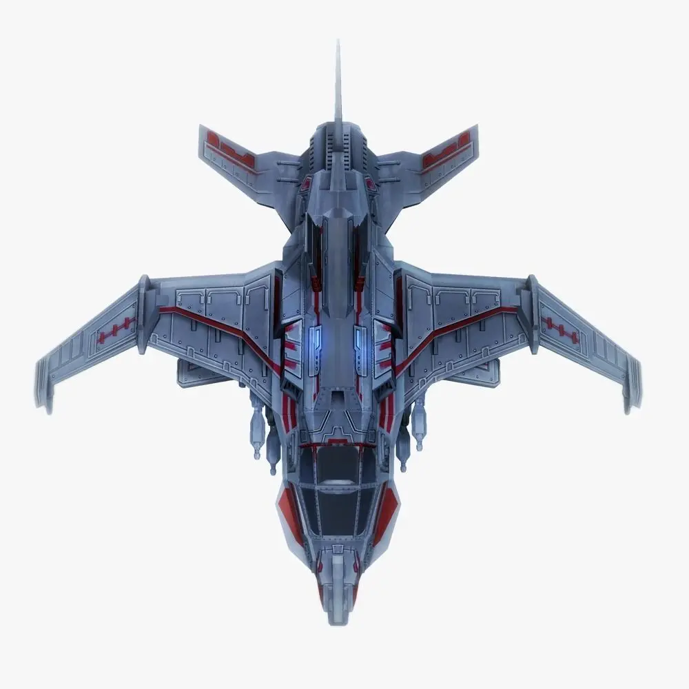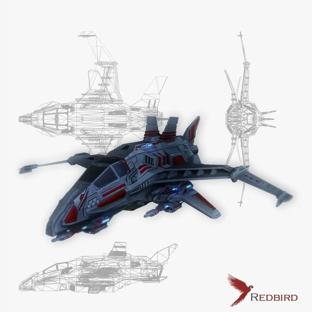 Low poly and game ready model of Sci-fi Spaceship fighter; Includes 2048x2048 .png textures; Consists of 1 object and 1 material. Each material includes UV, textures and maps; Textures and maps included: Diffuse, Normal, Specular, Glossy, Emission; Original file is .blend; Also includes Game ready Unity scene; Made in Blender 2.78; Rendered with Unity 5;