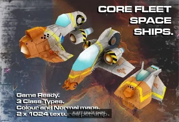 Collection of Spaceship created by Tiger Shark Studios. These ships can be used in FPS, open world and RTS game levels, space games that are side scrollers or top down genre.