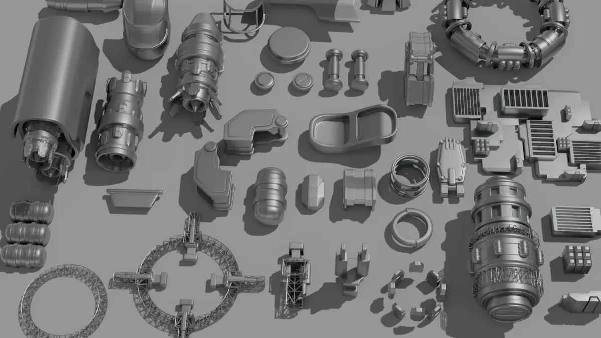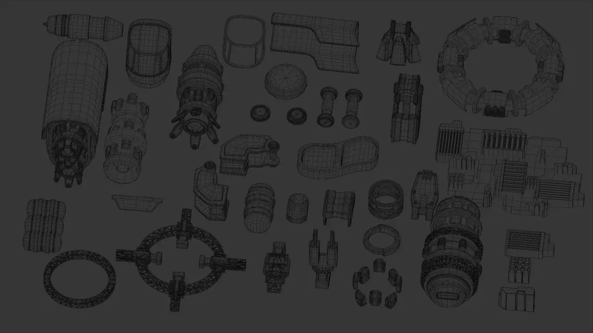 Spaceship Parts (kitbash pack)Fresh space assets that are out of this world. Pack contains modular pieces, perfect for personalization and creating your own designs.