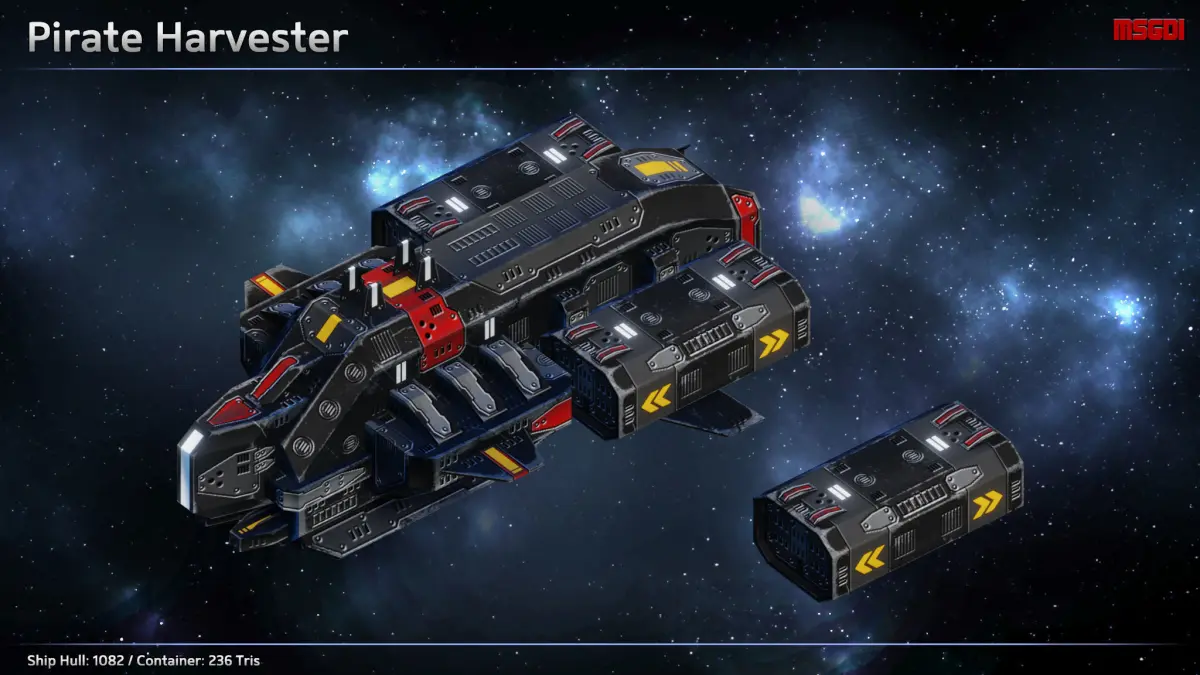 - Texture sizes are 2048 (mining vessel) and 1024 (harvester)