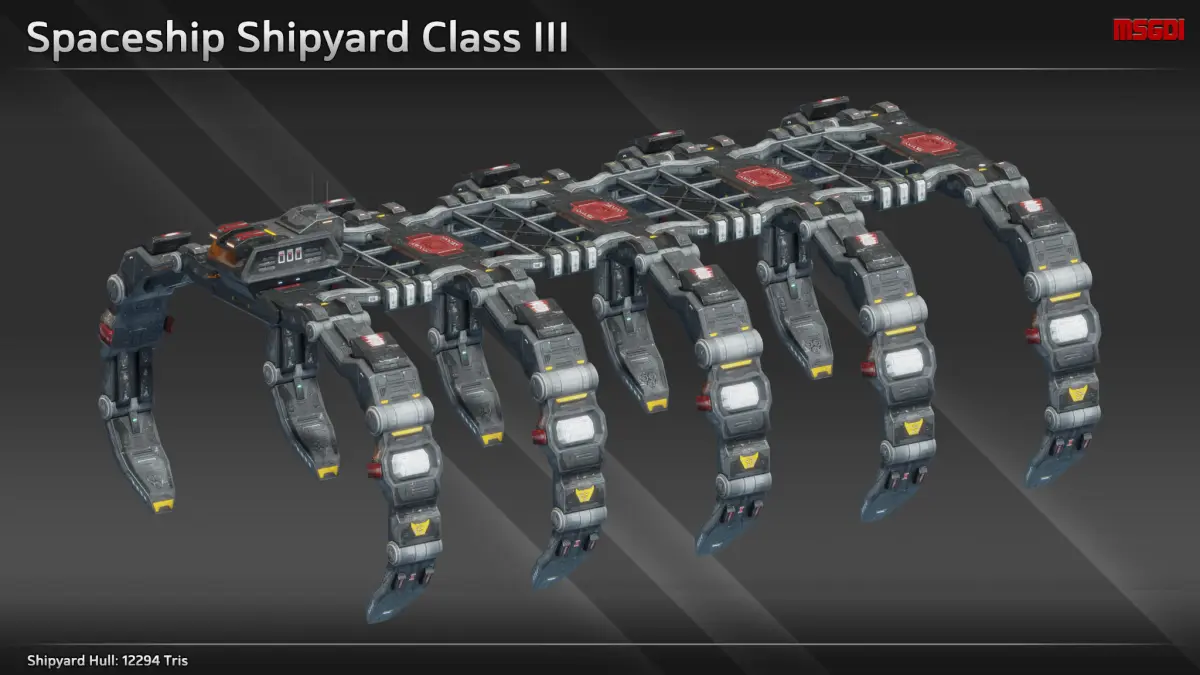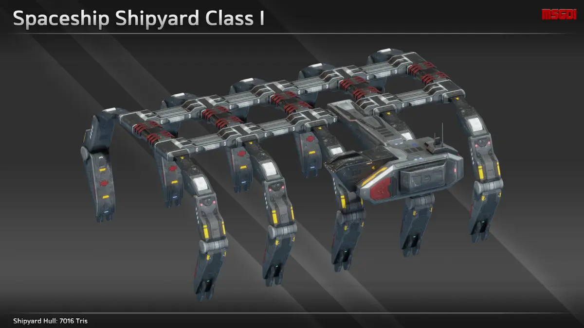 - Final tris count depends on how many parts are used for the shipyards