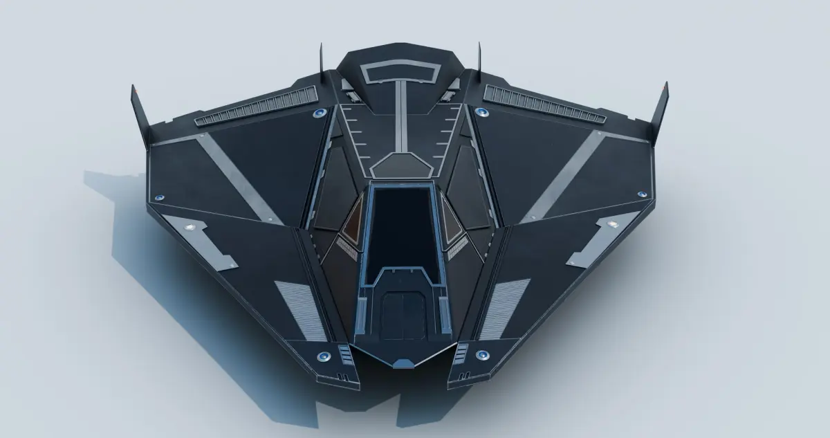 _The design is unique, inspired by modern sci-fi aesthetics, with smooth surfaces, sci-fi landing gears, and powerful thrusters.