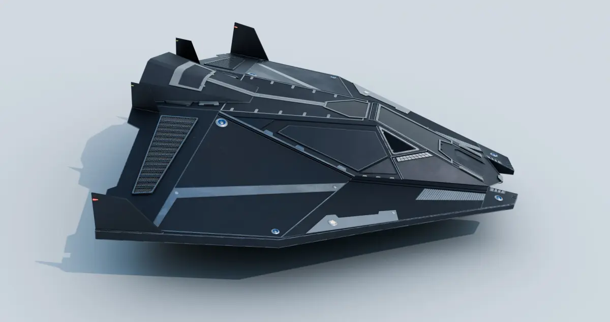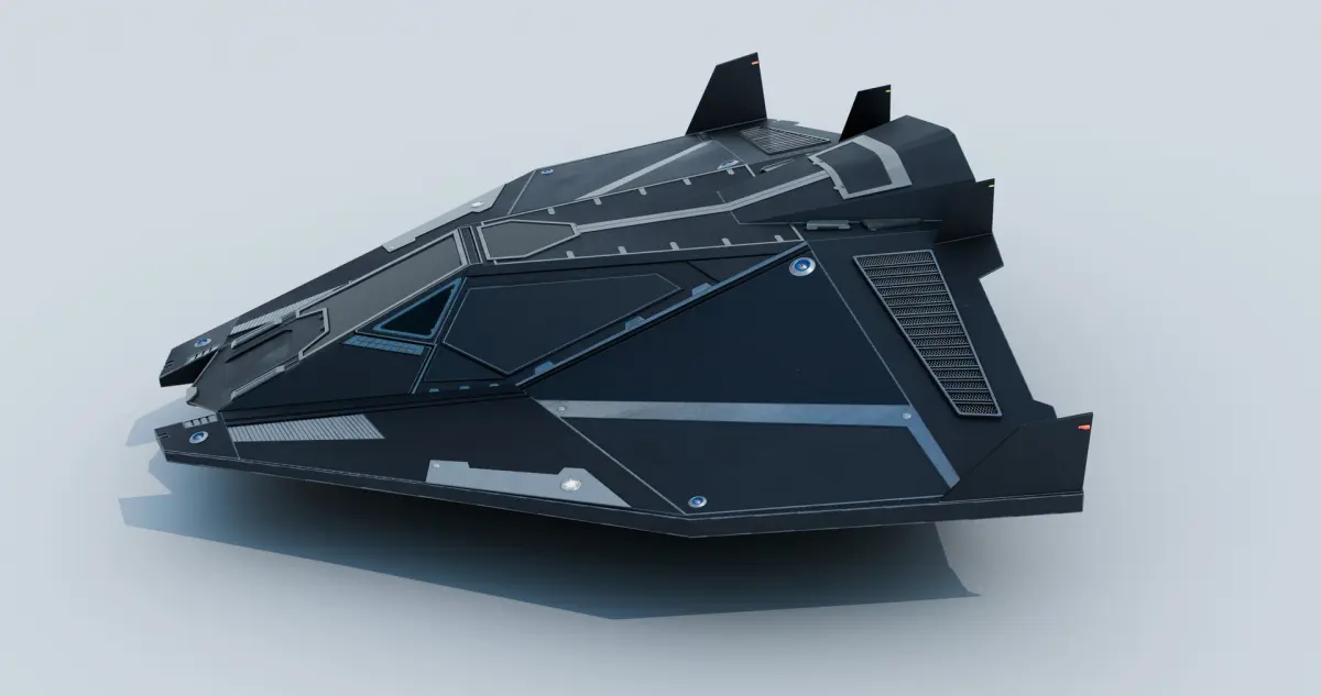 _This is a clean and detailed spaceship featuring a sharp, angular front and a wide black glass cockpit.
