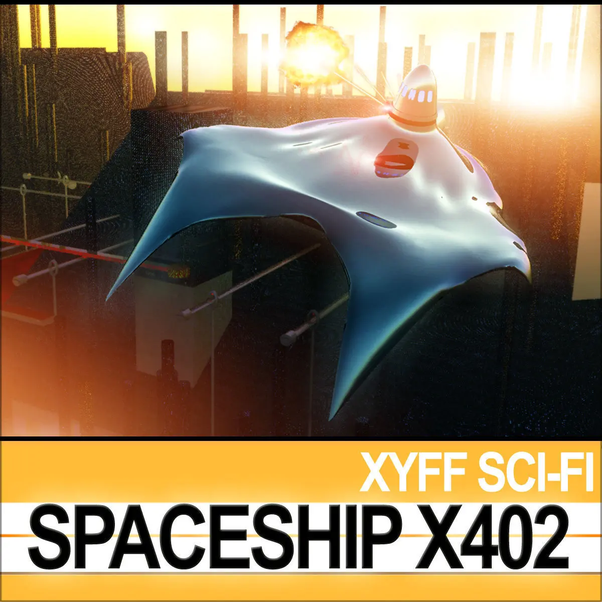 In the package you will find:1- 1 Spaceship X402 [usable Cockpit, Heavy Weapons Set, 24 Cannons Rotational System and Animatable Landing System]2- 39 Hi-Quality Hi-Def PhotoReal Textures [2048x2048; 1024x1024;512x512];3- Alternate Textures and UV Maps to create different types of elements;4- Real World Scale SmartCgArt Man Reference System with models [C4D, VUE, 3DS, OBJ, DXF].