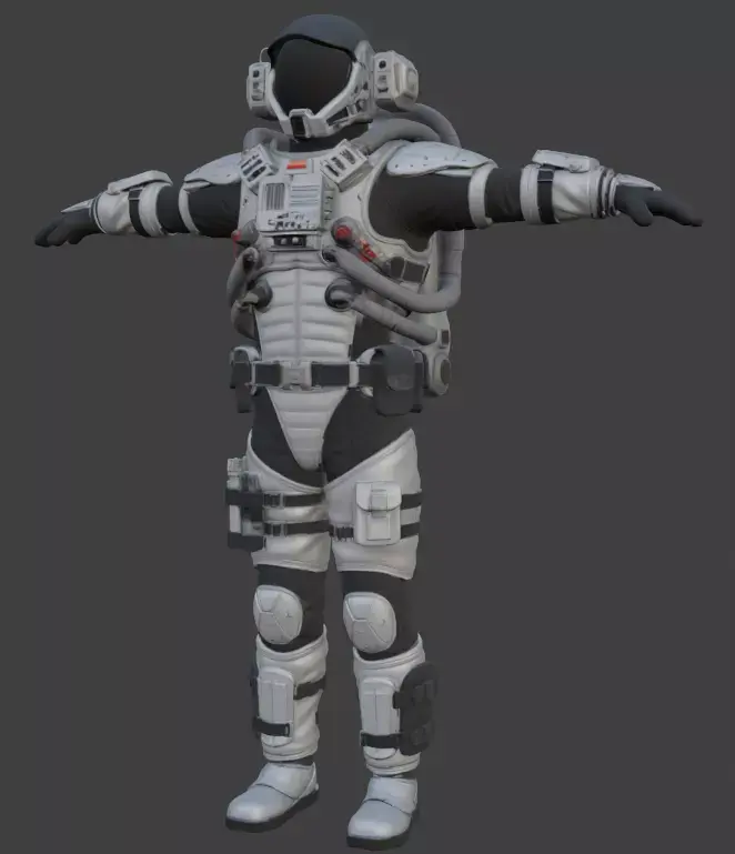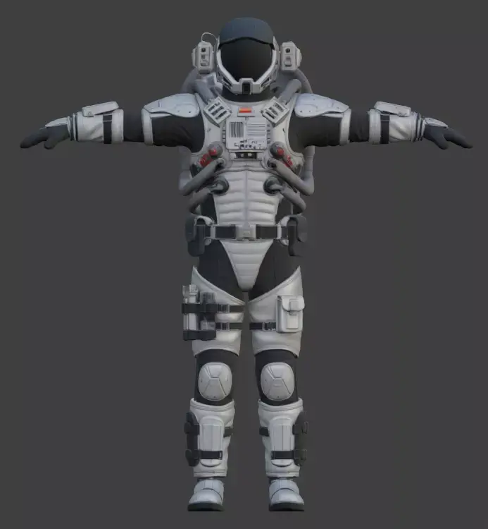 100% quad-based polygon meshNon-overlapping UVsFull PBR texture set (Base Color, Normal, Roughness, Metallic, Height, AO)Realistic details on helmet, backpack (PLSS), gloves, boots, and hosesGame-ready and optimized