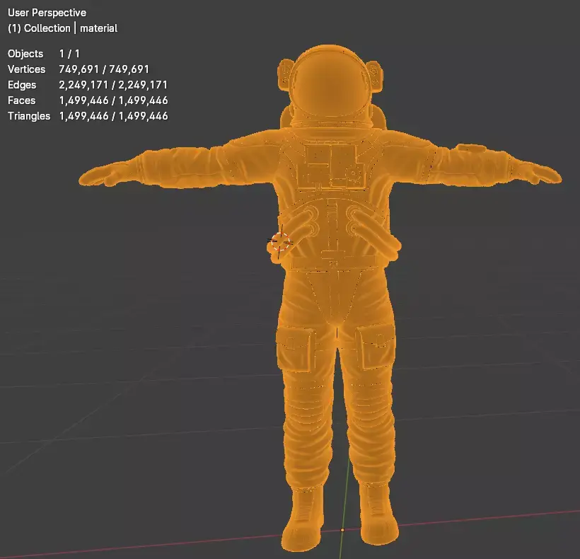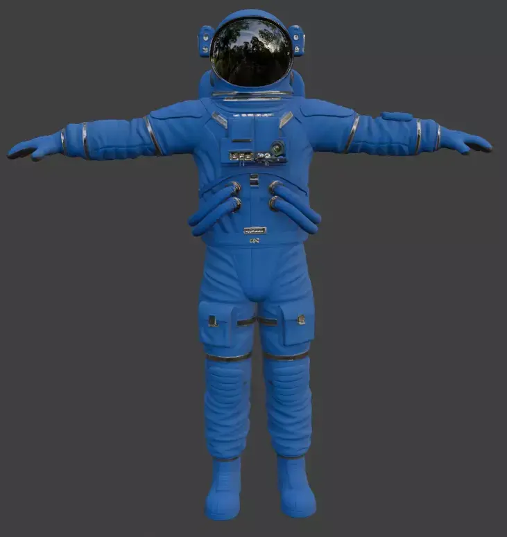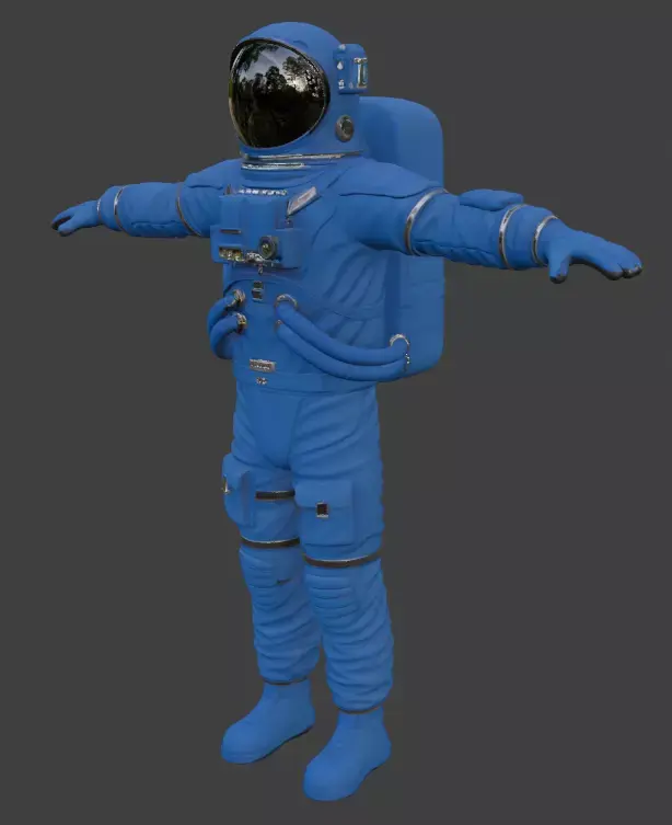 Highly detailed 3D model of a modern orange extravehicular activity (EVA) spacesuit worn by astronauts during spacewalks. Features realistic fabric folds, life support backpack (PLSS), helmet with reflective visor, gloves, hoses, connectors, pockets and authentic NASA-style details. Perfect for space station scenes, moon missions, Mars renders, sci-fi projects, VR and high-end visualizations. Clean topology, non-overlapping UVs, PBR materials ready for any render engine.