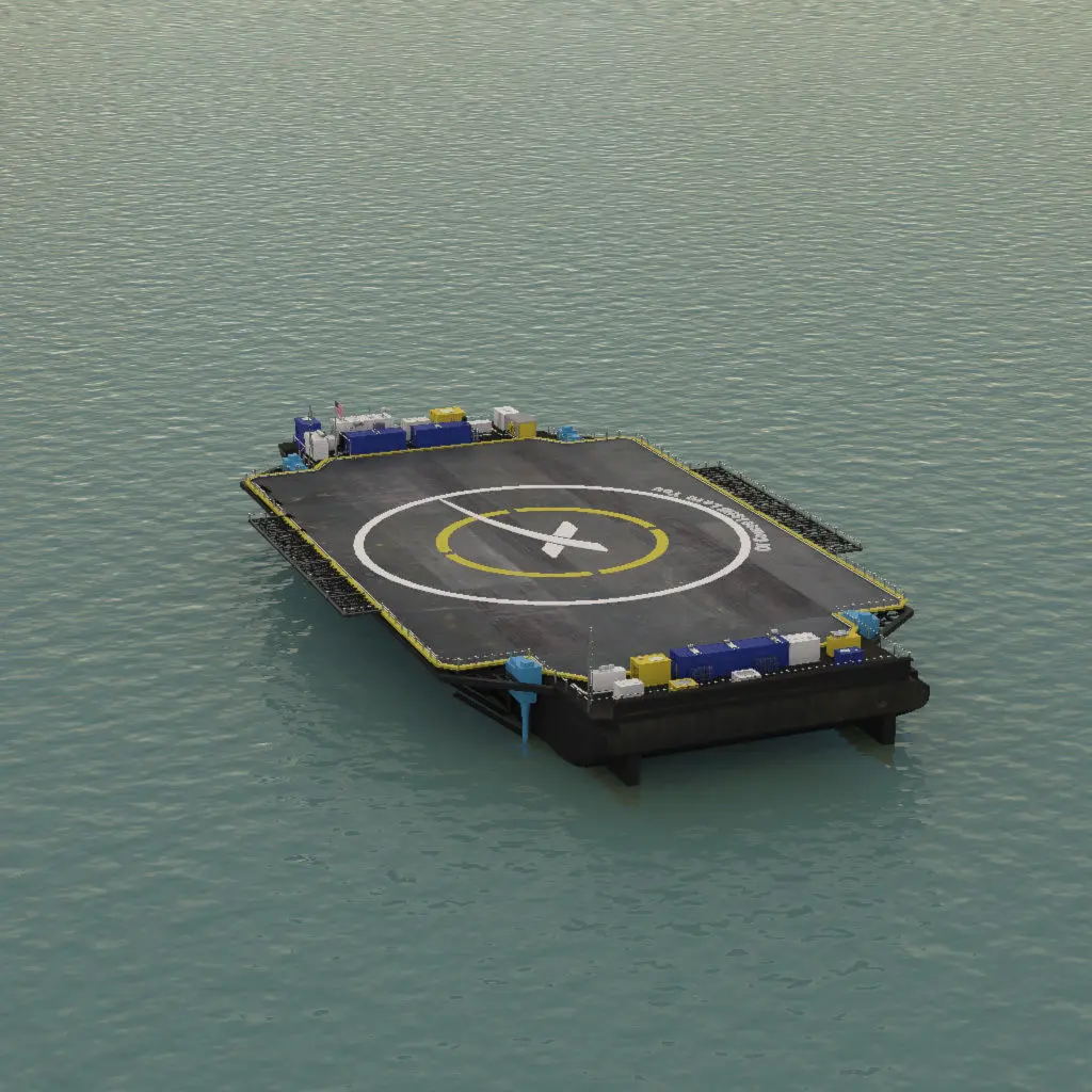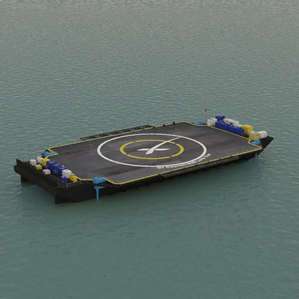 SpaceX landing barge. Autonomous Space Drone ship. Textured, animated ocean. Ocean animated with V-Ray water on Maya version and with fractal on MAX version.High res textures.Maya and Max have slightly different textures on deck.