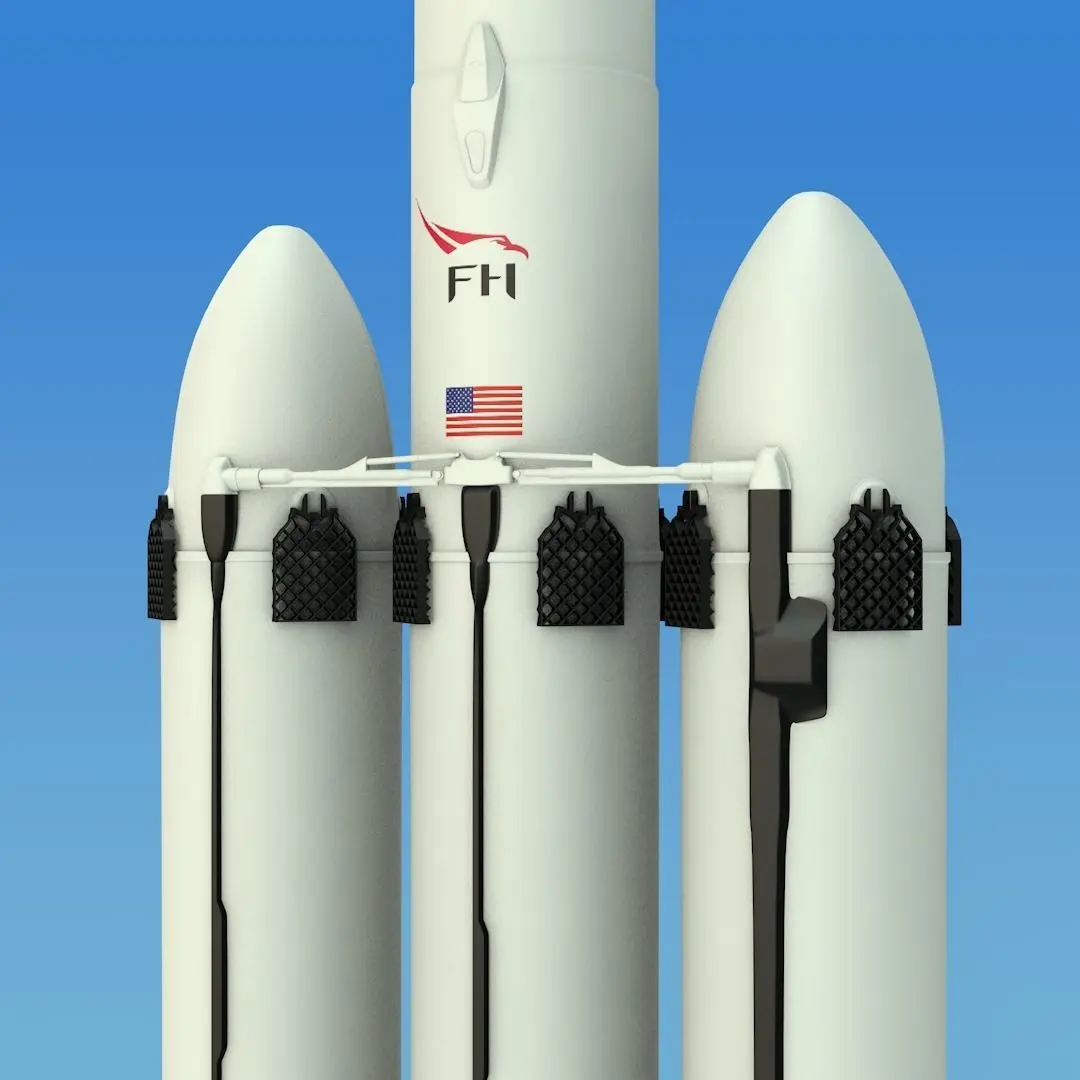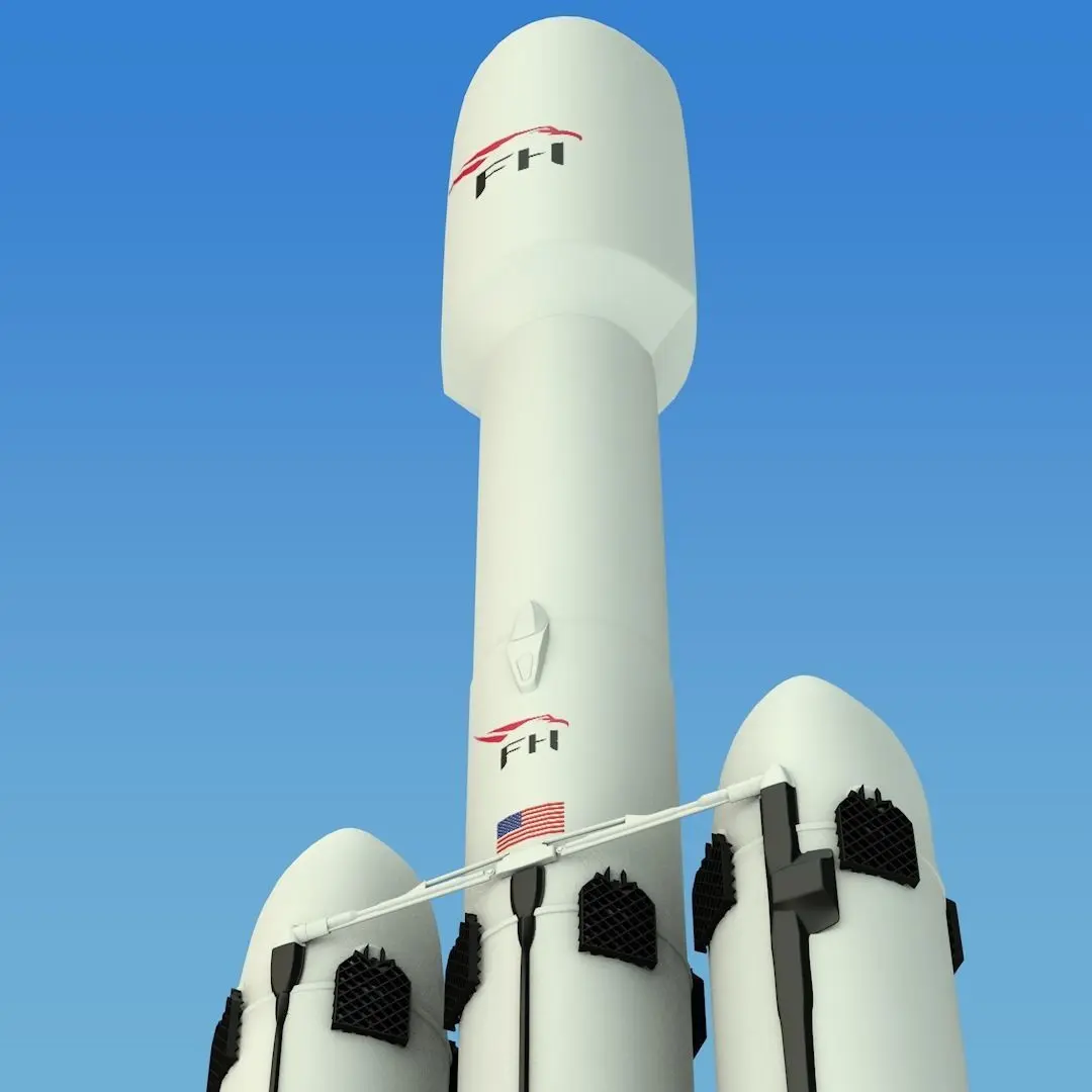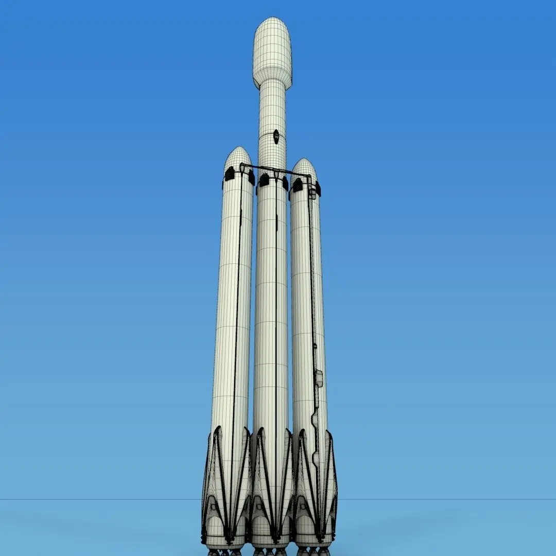 SpaceX's Falcon Heavy rocket 3d model. The Falcon Heavy is basicaly 3 Falcon 9s attached together. The main booster, it's legs and the gridfinds are movable objects, the secondary boosters are the same