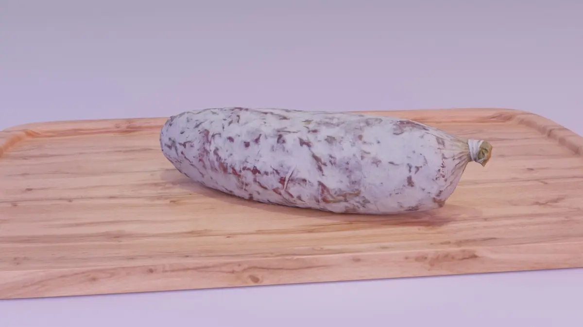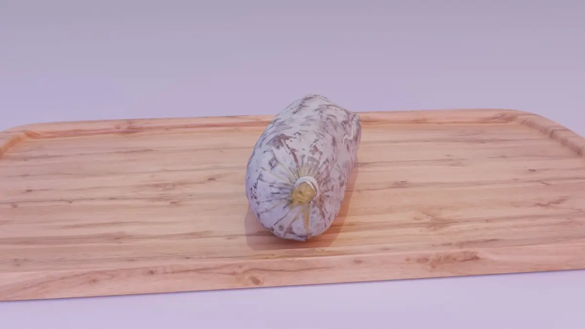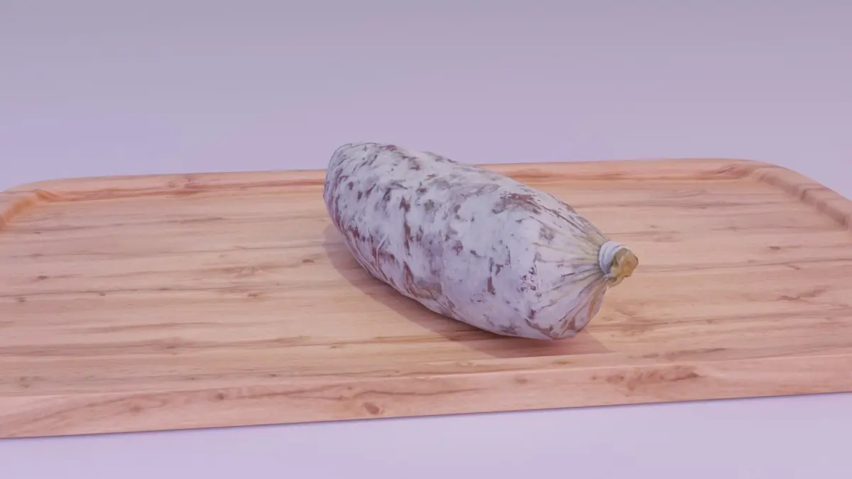 This is a photorealistic low-poly 3D model of the Spanish fuet salami.