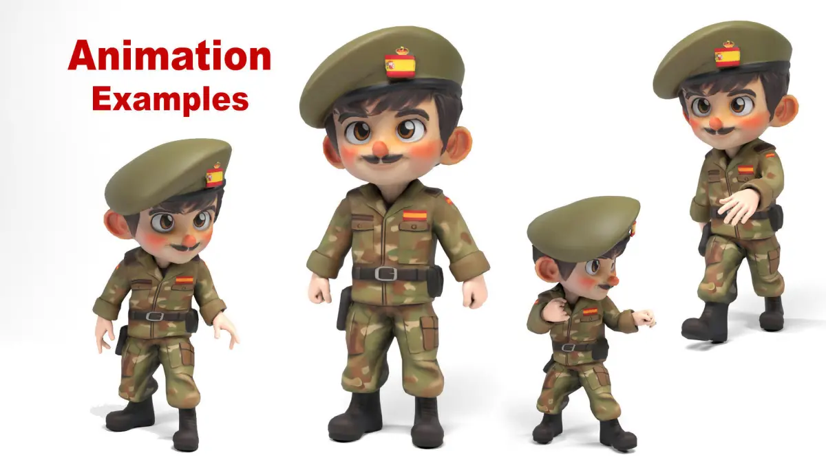3D model Spanish soldier cartoon. The model includes bones and several animations examples. Model ideal to be used in games, advertising and video production. Low-poly models to be used easily in any project.