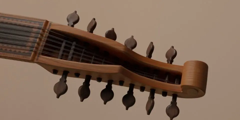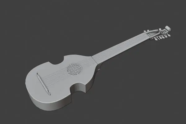 This is a vihuela, a 15th century precursor of the guitar and close relative of a lute. The Blender file contains a low-poly 10K version ready for subdivision.