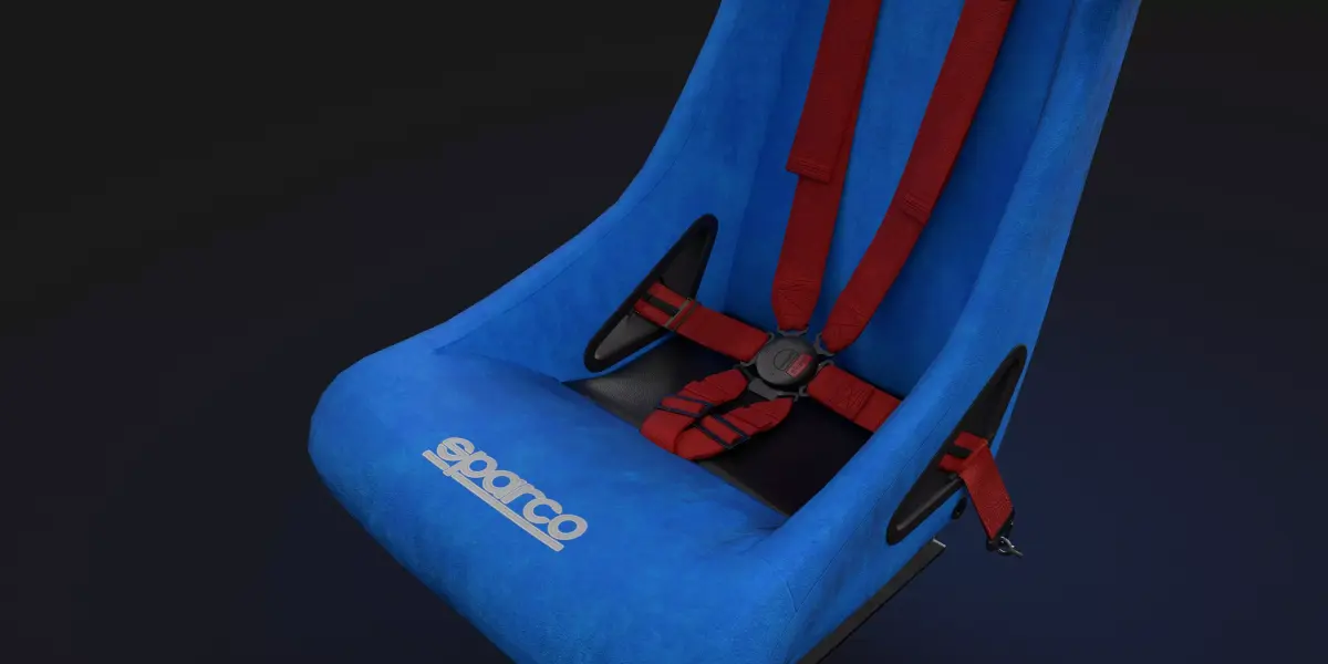This Model includes the Sparco Sprint racing seat with a 6-point Schroth harnes Model/Textures: