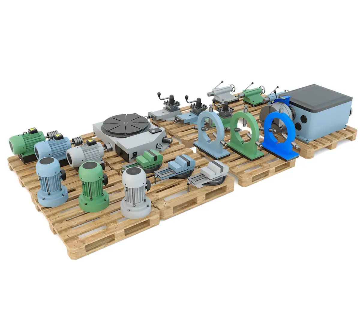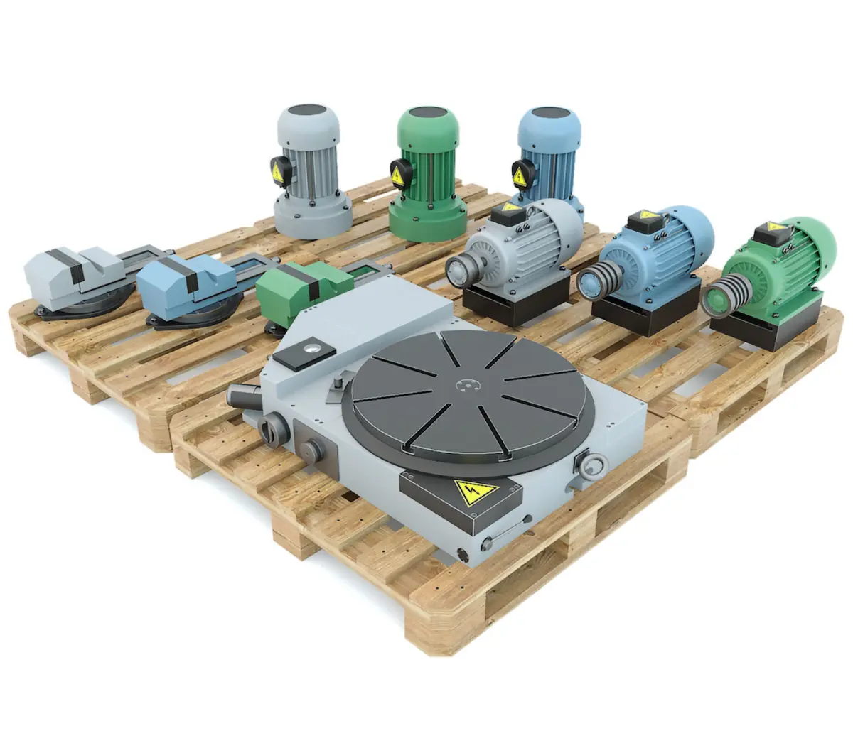3d Model: Another industrial collection from our studio, which consists of eight items at once. These are all kinds of industrial spare parts and components of machine tools, machine equipment. The following production models are collected here, two types of machine motors as horizontal, classic versions, as well as a more versatile version in the form of a vertical electric motor. They are applicable as an integral part of a large number of machine tools and forging, pressing equipment. These engines can be installed on the created 3d models of various production units. Further in the collection there is also an industrial turntable, which is primarily used for working on boring machines. And of course, there are machine vises here, without which no more or less serious production can certainly do. These vises can be successfully installed on the workbench, thereby filling the stage with the most relevant models. And of course, for greater realism, all these items were placed by us on special industrial pallets with a wooden texture. In addition to the listed models, the kit also includes a certain number of spare parts for the lathe. We highly recommend purchasing this detailed and of course realistic collection of spare parts for all kinds of industrial renderers.