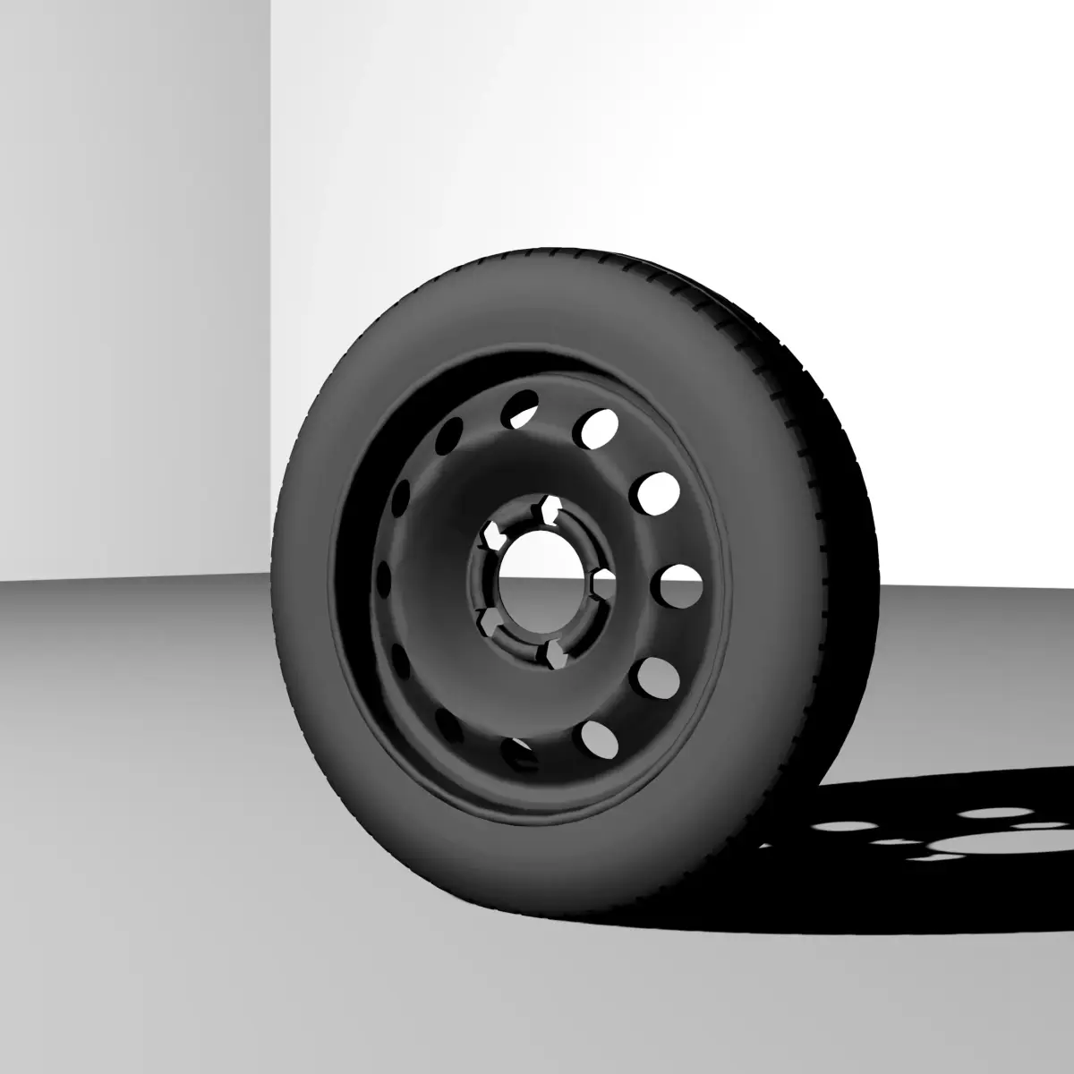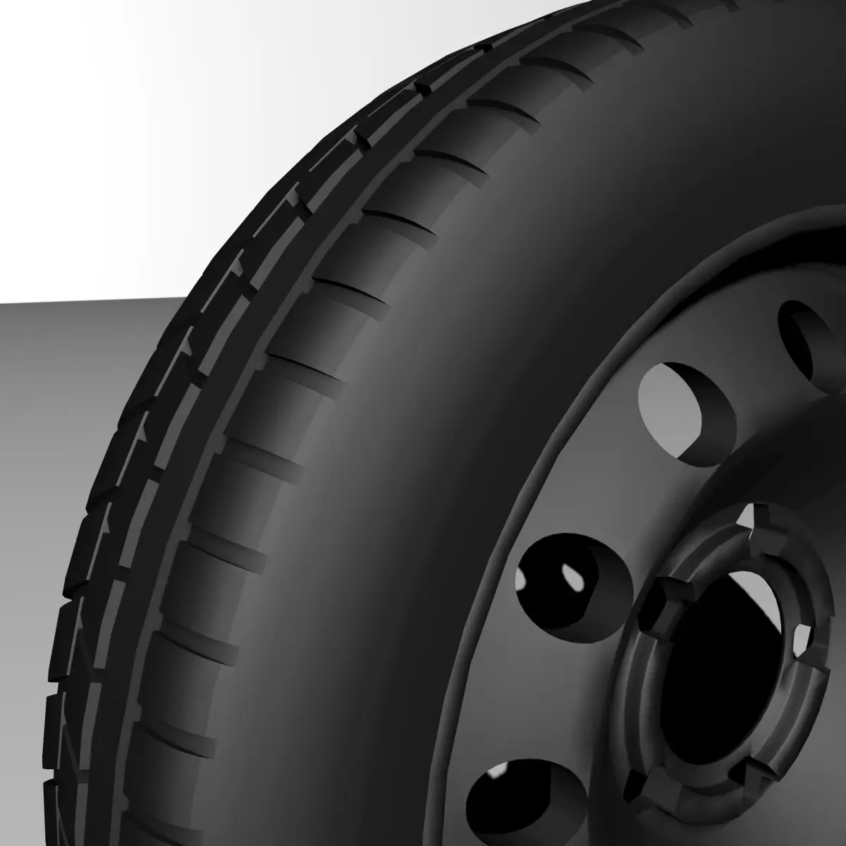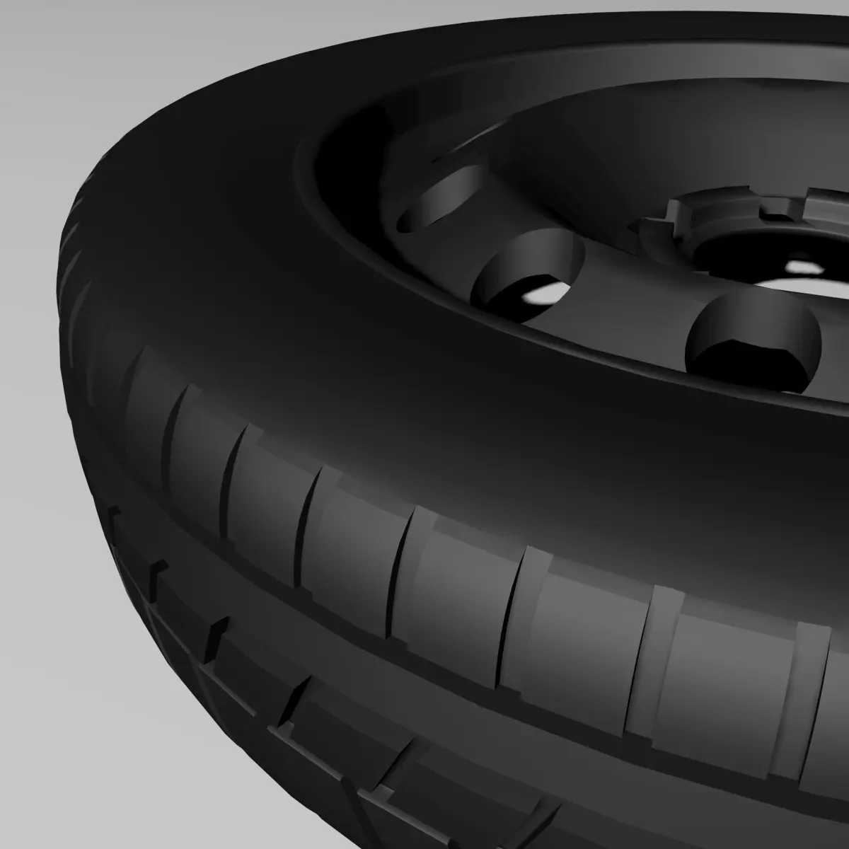 Spare tyre. This spare tire is very common in every vehicle. Including tread and lug holes. There is no brand on the tire.