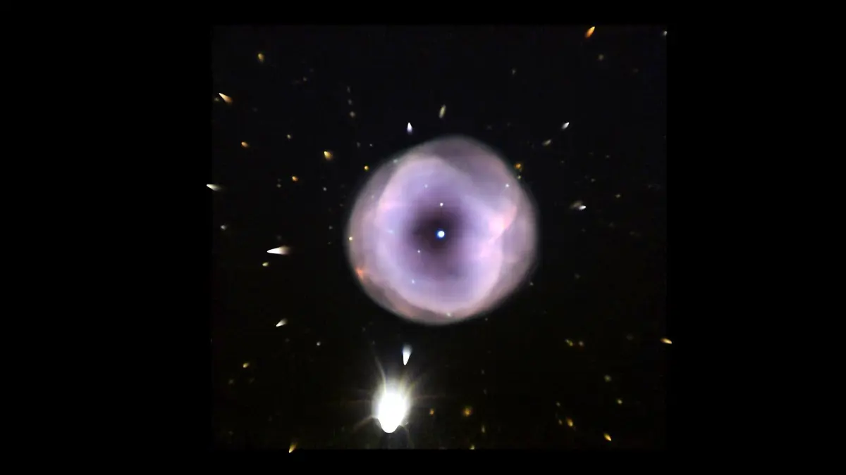 The Spare Tire Nebula (IC 5148) is an emission nebula located 3000 light years from Earth in the constellation Grus. in the western constellation of Grus. With an apparent magnitude of 16.5 and an apparent size of 2′ x 2′ arcminutes, the nebula is visible in binoculars and easily observed in small telescopes in good conditions. Its striking appearance has earned it the nickname the Car Tire Nebula. The Spare Tire Nebula (IC 5148) is one of the most iconic deep sky objects in the night sky. For astronomy science, extraterrestrial space exploration, space science, space travels, astro exploration science, celestial objects exploring, outer space, astronomy researches, and space exploring promotional projects.
