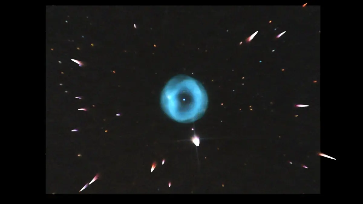 The Spare Tire Nebula (IC 5148) is an emission nebula located 3000 light years from Earth in the constellation Grus. in the western constellation of Grus. With an apparent magnitude of 16.5 and an apparent size of 2′ x 2′ arcminutes, the nebula is visible in binoculars and easily observed in small telescopes in good conditions. Its striking appearance has earned it the nickname the Car Tire Nebula. The Spare Tire Nebula (IC 5148) is one of the most iconic deep sky objects in the night sky. For astronomy science, extraterrestrial space exploration, space science, space travels, astro exploration science, celestial objects exploring, outer space, astronomy researches, and space exploring promotional projects.