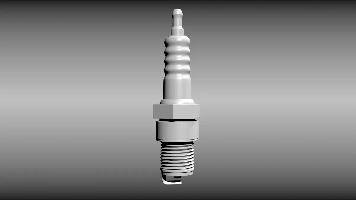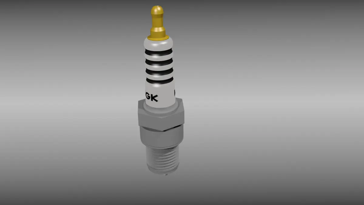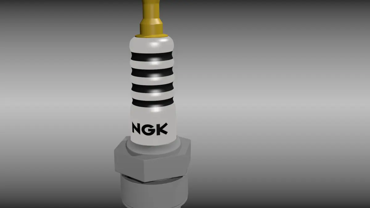 An NGK spark plug modeled to specs, with textures and materials applied.