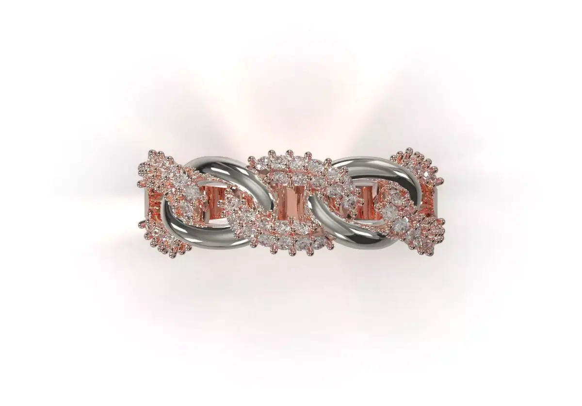 - Structural complexity: The precise design of the connection of the rings and the transfer of the gemwork to the polished surface indicate a professional CAD file.