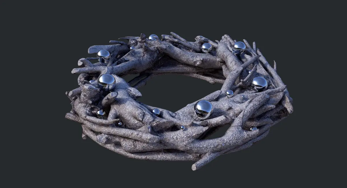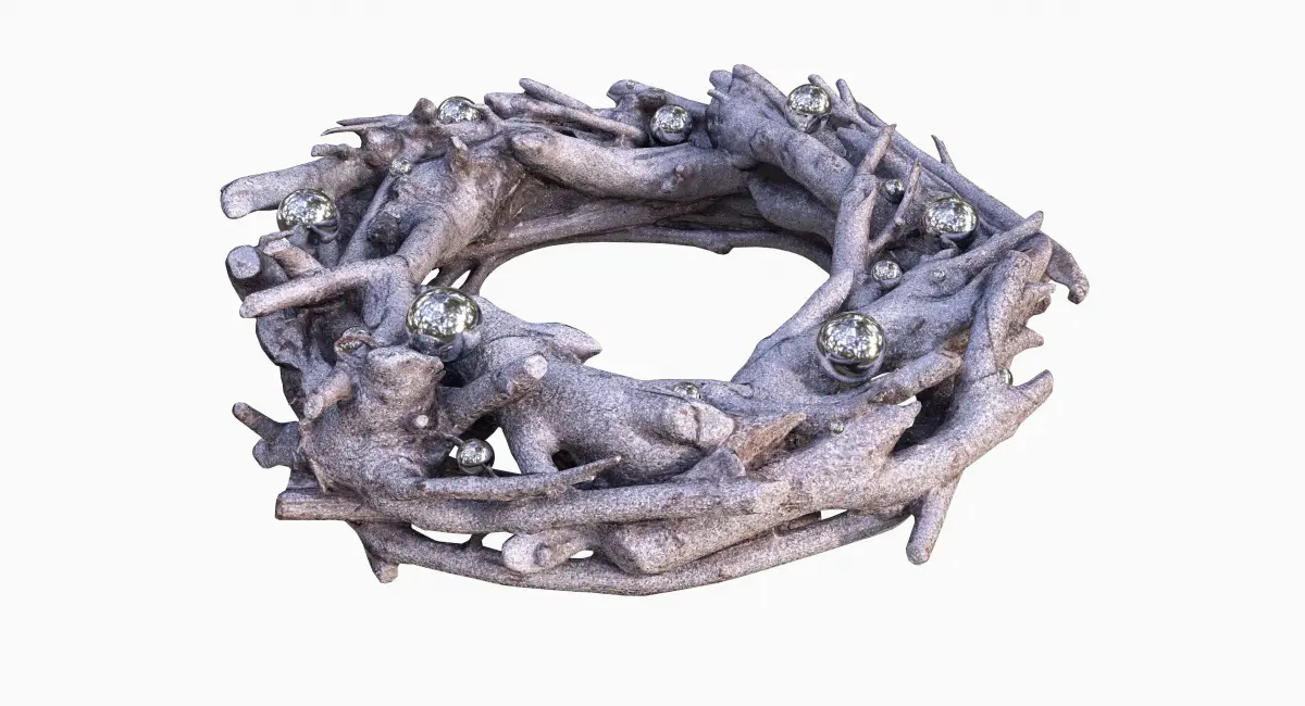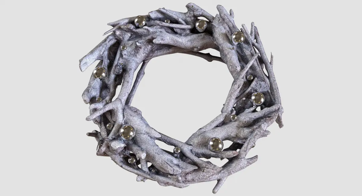This 3D model of a Sparkling silver glitter wreath features exquisite detail and realism, thanks to advanced photogrammetry and careful sculpting in ZBrush. The silver glitter adds an elegant, festive touch, making it perfect for holiday decorations or stylish visual projects.