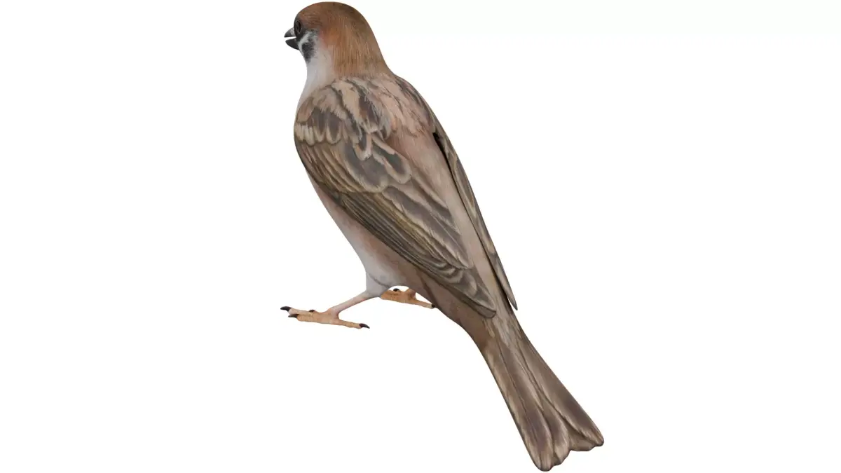 This Sparrow is a high quality model that will enhance detail and realism to your rendering projects. The model has a fully textured design that allows for close-up renders, and was originally modeled in Blender and rendered with KeyShot.
