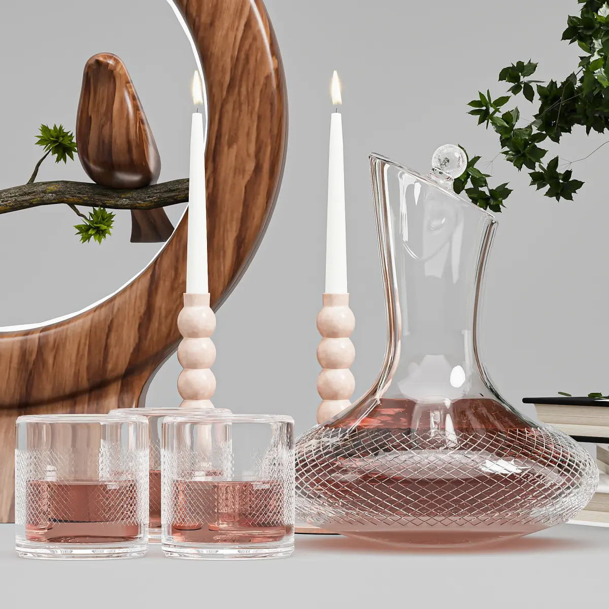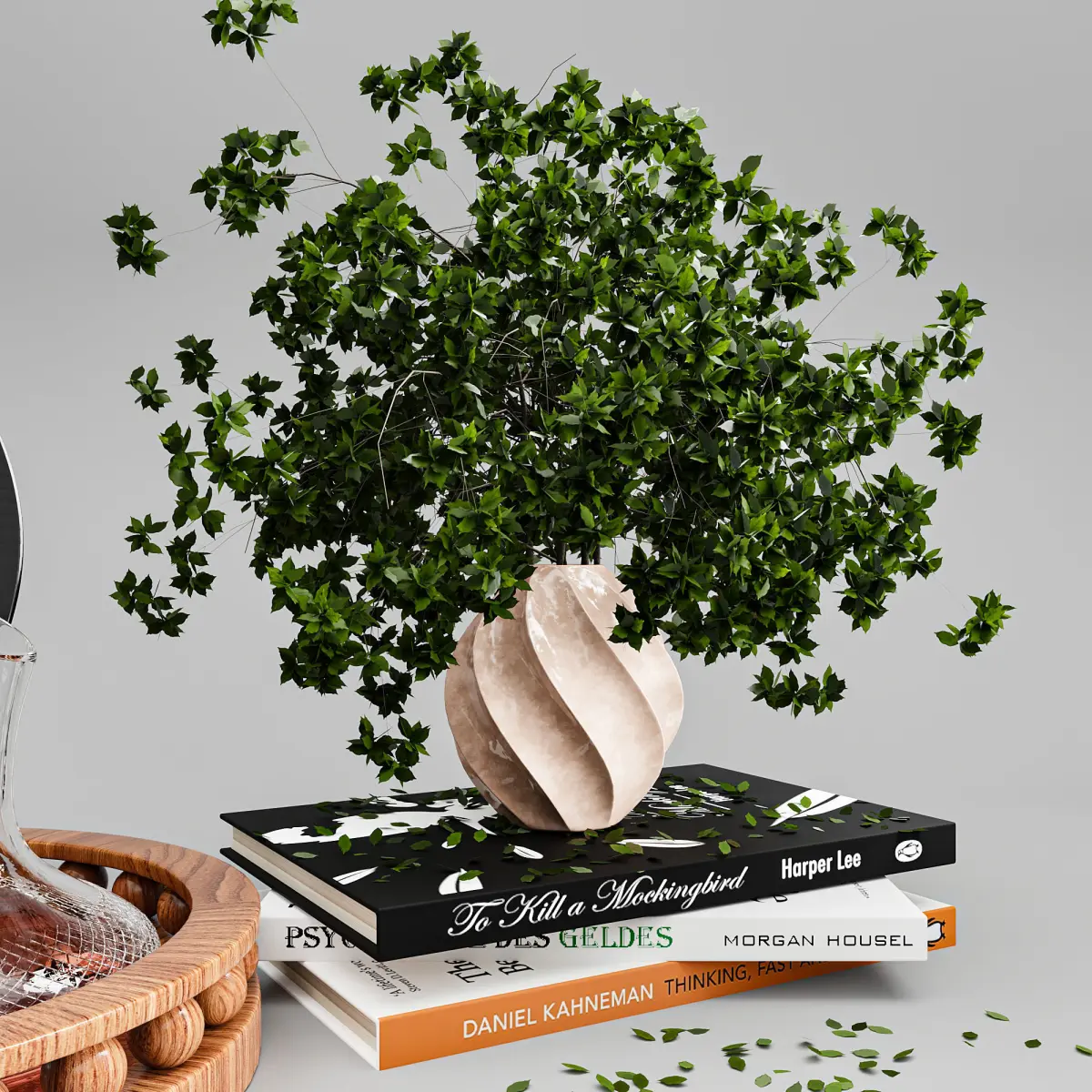 The file consist of 3dsmax2016+corona8+vray5+obj+mtl+mapsscene consist of sparrow decorative light ,tray ,falgon,3 glasses,2candles,3books and one vase there is no curvature map in corona material editing , scene is checked with sini software and no malware detected. texture on falgon and glasses is on the model mesh and its not material displacement . In vray scene no translucensy map is used for maps but you can find this map in mapsfilder so you can assign it to leaaf material if you want.thanks for your purchase and let me know if you had any problem using files.All previews are with corona renderer except for the one mentioned vray in the preview.