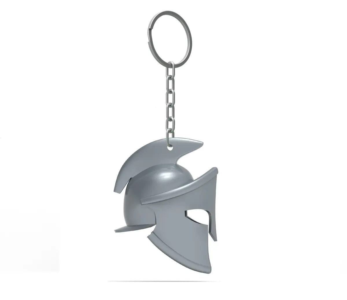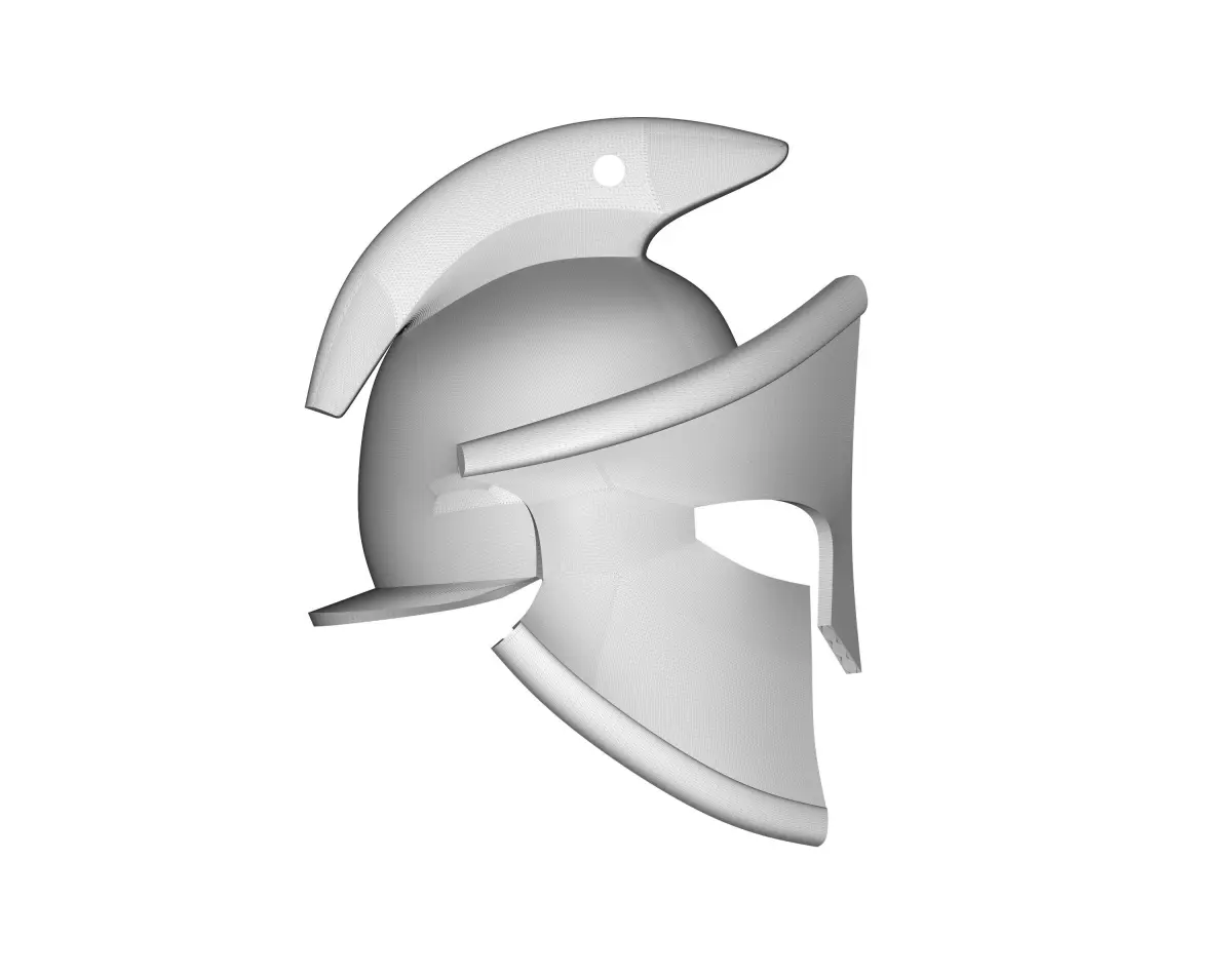 Spartan helmet keychain. It's Solidworks (SLDPRT) model was exported in other CAD formats:(X_T, IGES, STEP, OBJ and STL). This 3D model can used in producing on CNC machines and for 3D printing.Spartan helmet keychain dimensions: height - 1,7 inch (45 mm), width – 0,98 inch (25 mm), wall thickness – 0,04 inch (1 mm).