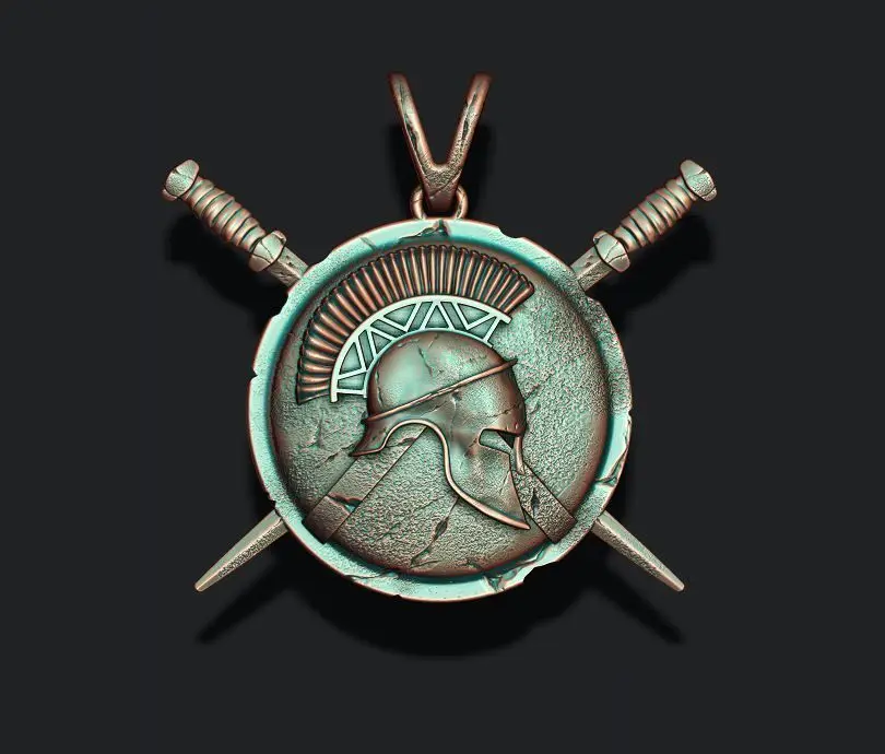 270.Spartan Helmet Shield Sword pendant