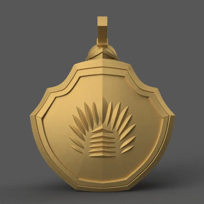 Assembly InstructionsThe pendant is designed as a single piece for ease of printing with no assembly required. Ensure the printer's adhesion settings are adequately adjusted to prevent warping during the print process, particularly the base of the shield.