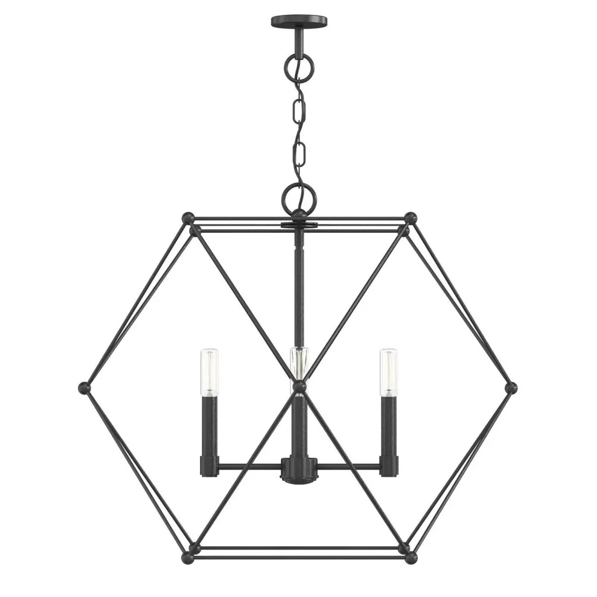 Spatial showcases a modern form that complements Urban Industrial and Bohemian styles. Overscaled geometric frames feature designs inspired by metal trusses and the art of engineering. A Matte Black finish is highlighted by open candles. The four-light pendant is ideal for foyers and entryways.Spatial showcases a modern form that complements Urban Industrial and Bohemian stylesOverscaled geometric frames feature designs inspired by metal trusses and the art of engineeringA Matte Black finish is highlighted by clear globe shadesUses four 60-watt max. G16.5 candelabra base bulb (sold separately)Progress Lighting Design Series, a collection offering fashionable styles and affordable luxuryCan be displayed singularly or in groupings of two or more in a variety of spaces.
