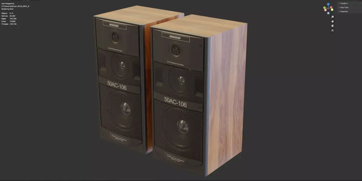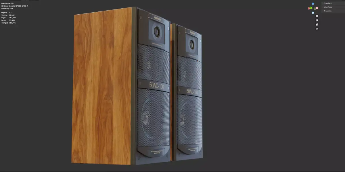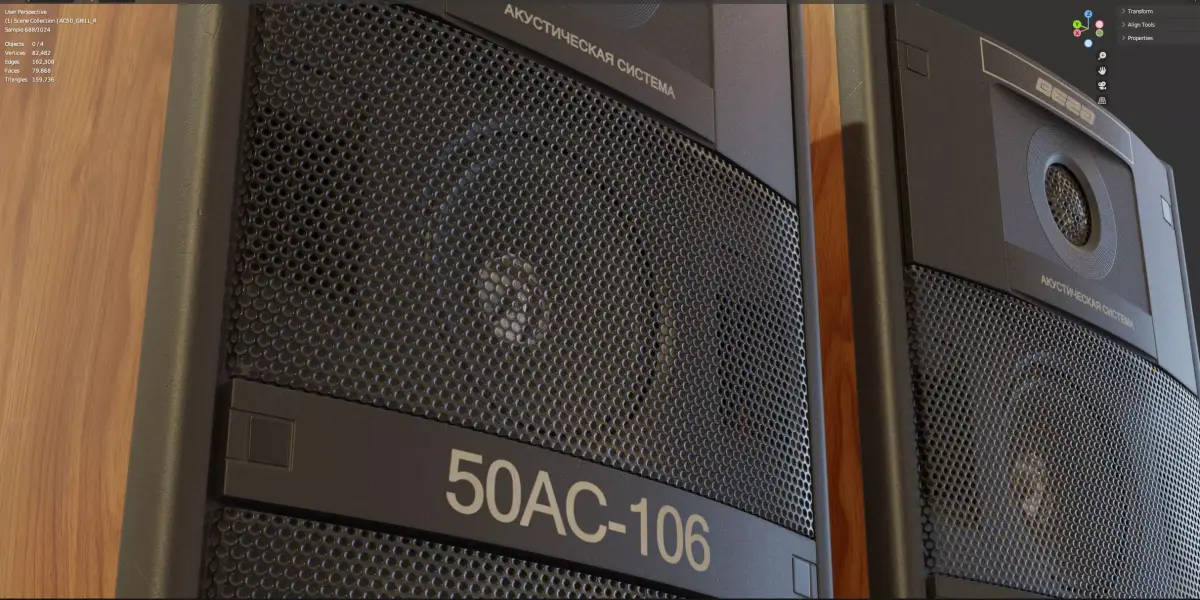 The speakers and the grid on the speakers are separate objects with different materials.