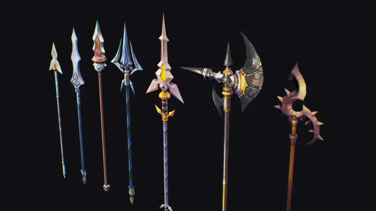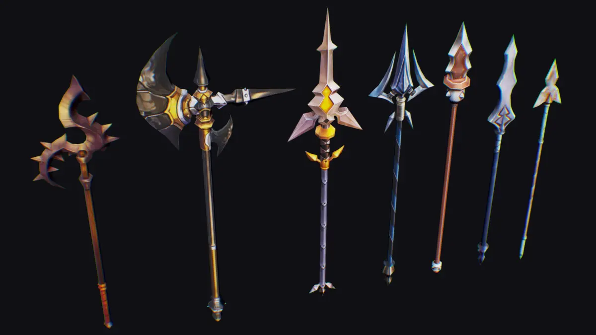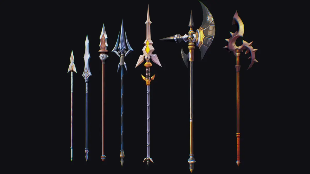 Spear Pike Lance Corbin War Scythe Halberd Glaive Hook Low-poly 3D model