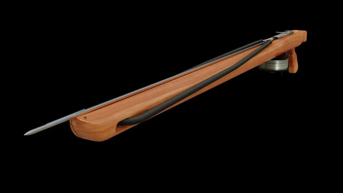 Spear gun,this model is made of wood and it's equipped with 2 lod.