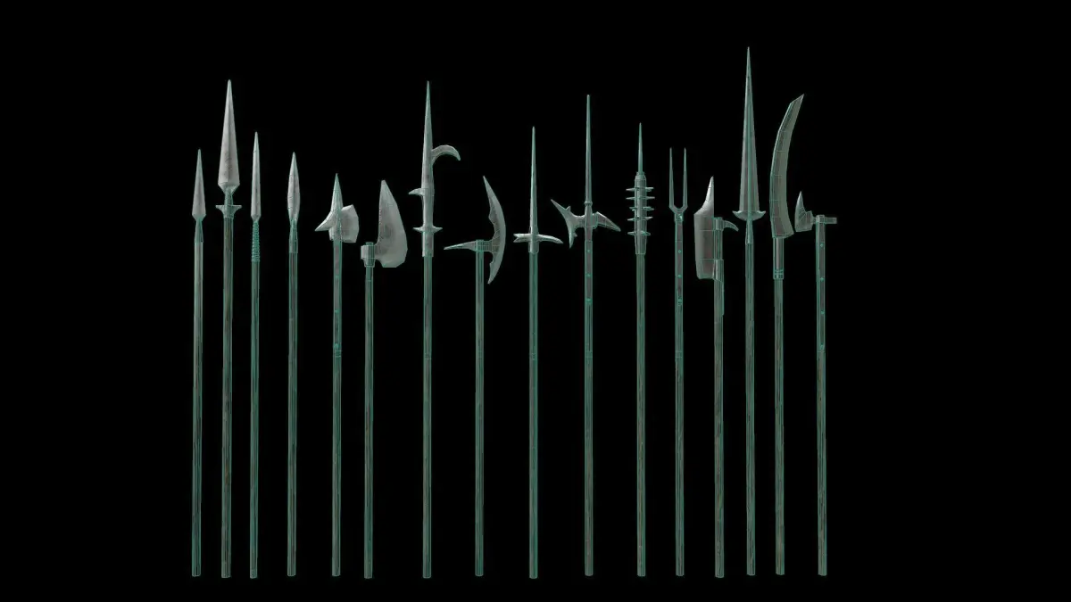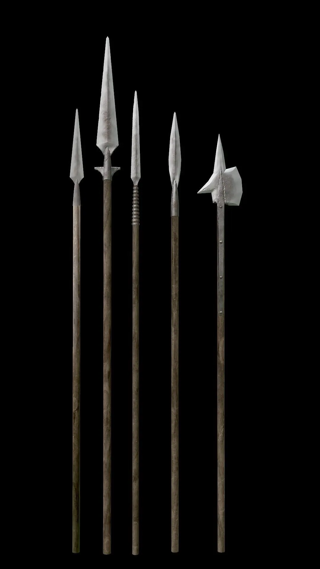 This is a package of 16 pieces of spears (polearms). Low-poly, game ready asset pack.The Package contains 3 different file formats, such as .fbx, .obj, .stl, and the native, .blend file, and a collection of .gltf objects with the textures baked on the meshes. Each individual object can be found in the .rar package file with the indicating name.There is also 2 sets of textures, one of them contains textures form models from 1 to 8 and the other for the models from 9 - 16.The Polygon count shown (8098) is the total amount for all the 16 models.