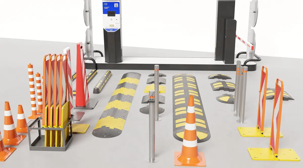 Detailed and accurate models of various parking equipment, including parking bollards, barriers, signs, and markings.High-quality textures that provide a realistic appearance.
