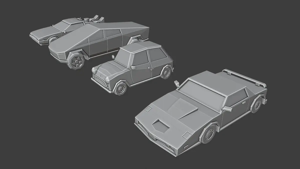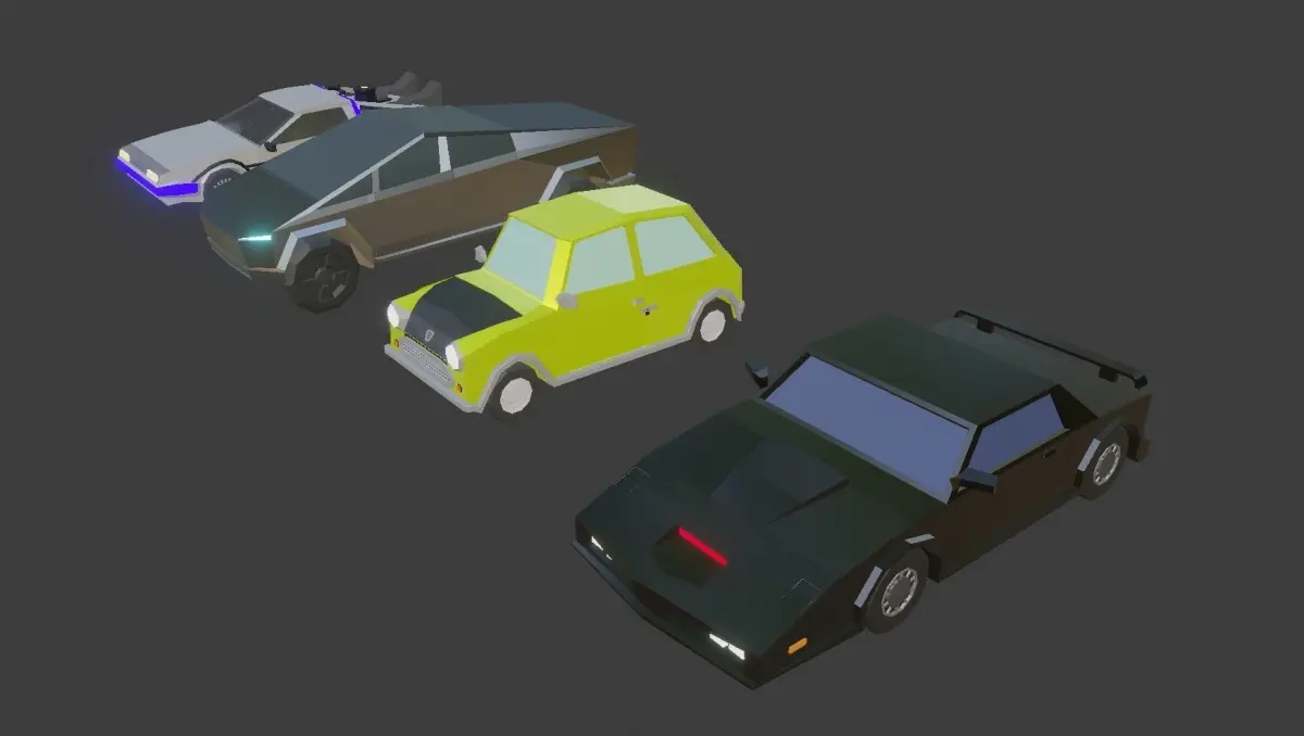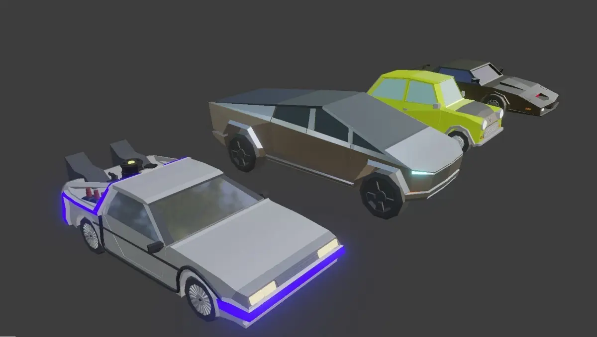 Special famous lowpoly cars from movies all cars have 9 490 verts., 18 257 edges, 8 941 faces and 18 654 tris.