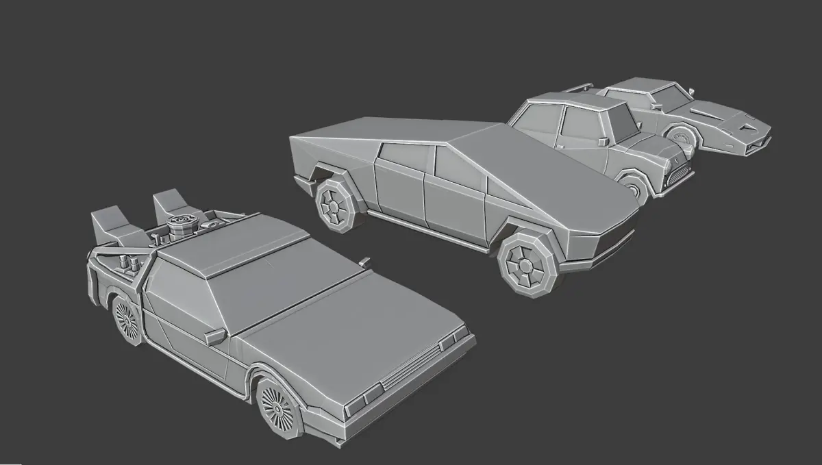 - Cybertruck - Tesla - 1 200 polygons, 656 verts., Wheels - 600 polygons, 440 verts.