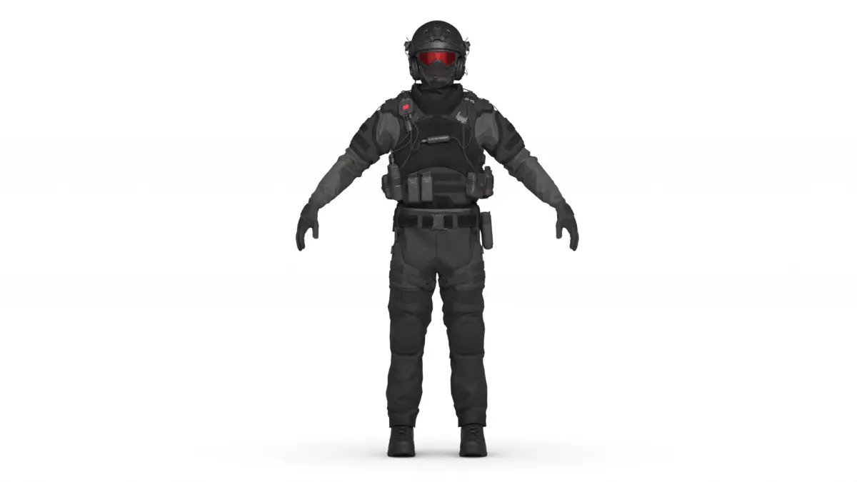 Key Features:Fully equipped with body armor, tactical helmet, night-vision gear, radios, and pouches
