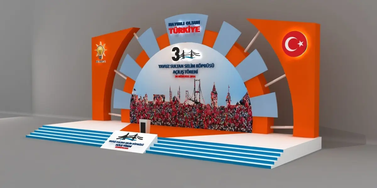 This is a outdoor or indoor opening ceremony , launch 3d stage decoration special podium.