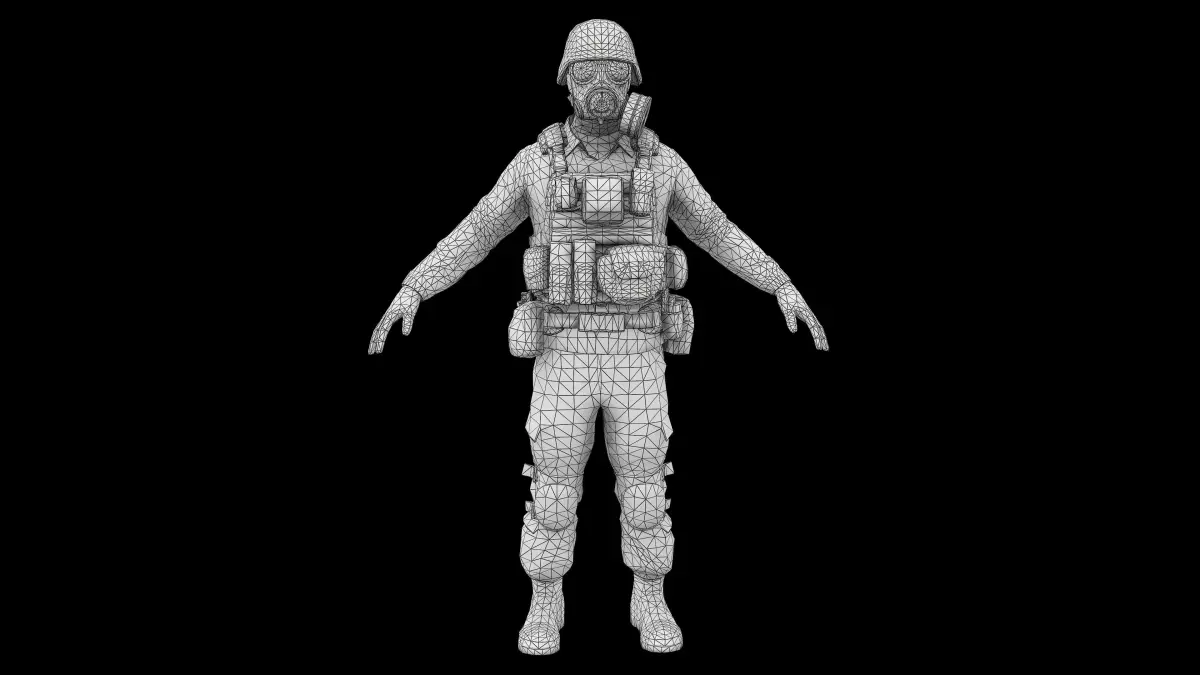A Game-Ready lowpoly character with PBR textures.Character ready for Unreal Engine 4 & Unity.Rigged with Epic skeleton for Unreal Engine & Humanoid rig for Unity (Compatible with all standard animations).One of the characters from pack: https://www.cgtrader.com/3d-models/character/man/modular-militaryVertex/Tris counts of characters: 11 714 / 22 794