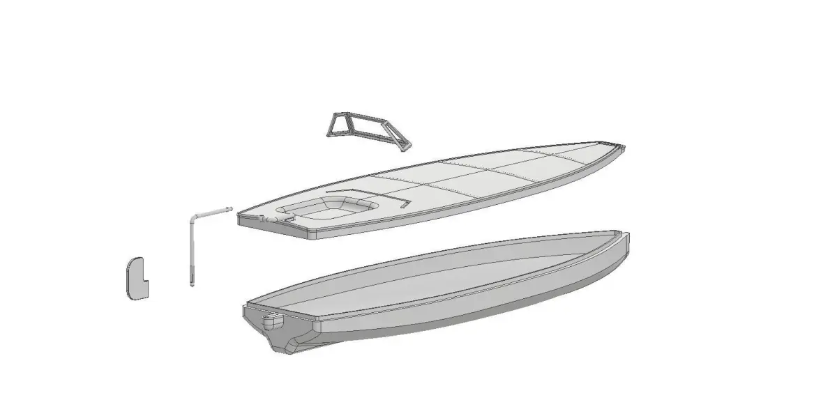 Speed boatSome parts are assembled with glue. Export formats: .stl .step. Length 390 mm.Width 115 mm.Height 60 mm.If you need to change some parameters for 3d printing you can mail me.Hope you like it, if you have any questions or problems, email me.