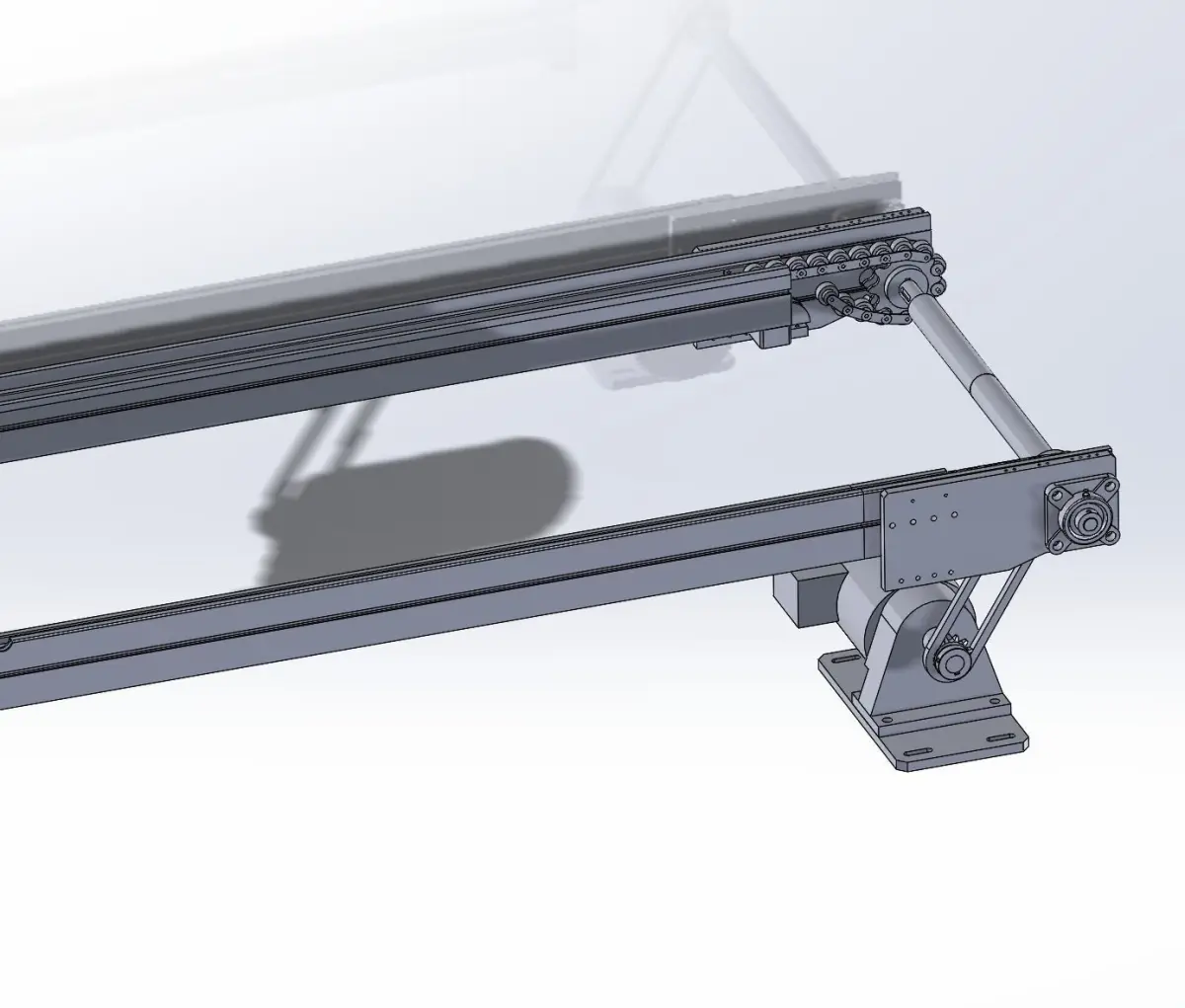 Speed-fold conveyor chains, the conveyor by times speed chain transmission, can be a rate increase 3 times, at the same time institutions included in the large cylinder jack-up organization, design is very classical, contains1. times the speed chain sprocket mechanism 2. cylinder point of jack-up institutions, through the hinge mechanism to change the height of the top3. Vertical cylinder top institutions