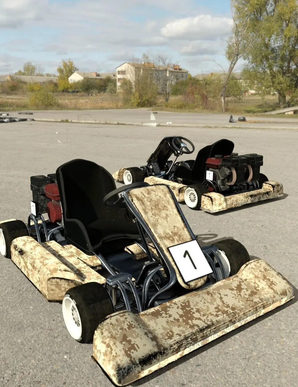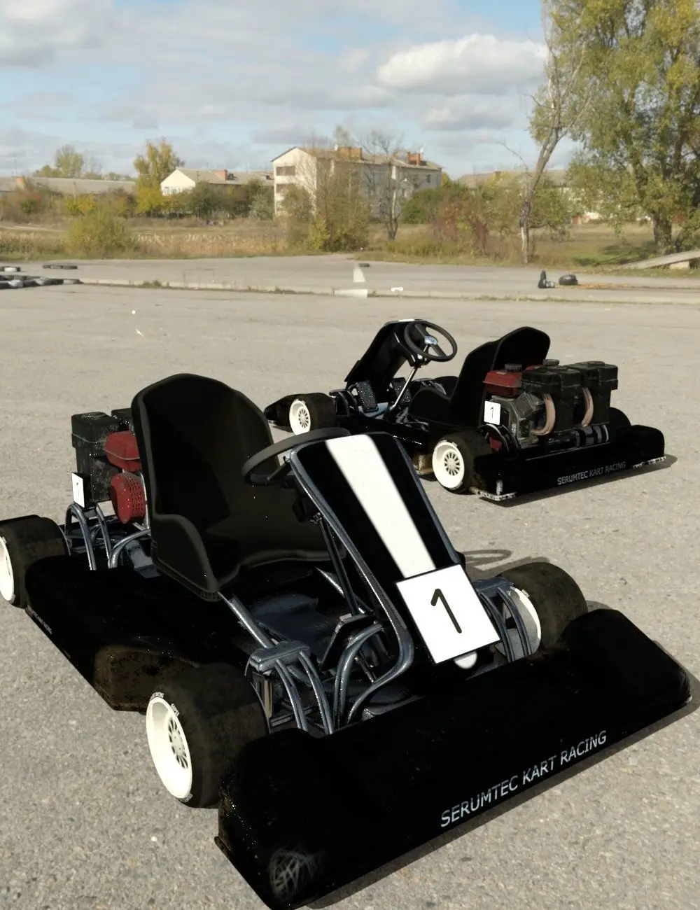 Zooom as the Go Karts go flying roung the track!Only you can know who is going to win. Welcome to the speedy go kart vehicle by Serum.Based on the dual 2 stroke engine these karts are known for their speed around the track.This model has posable wheels and a selection of colour choices which go beyond just basic colouring including dirt and scratches for a more used feel.