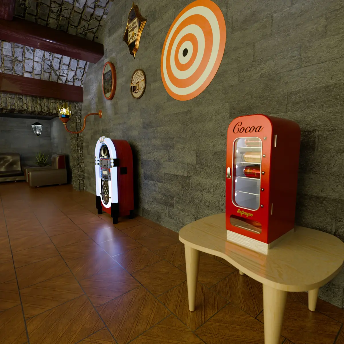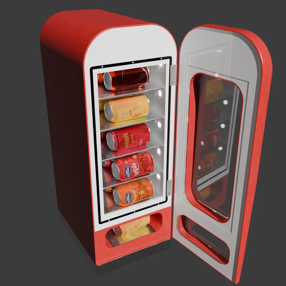 A vending machine. Present in the model of the scene model 3d of Bar Interior, with the cans of soda included.